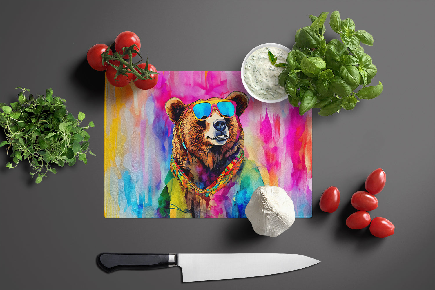 Hippie Animal Grizzly Bear Glass Cutting Board