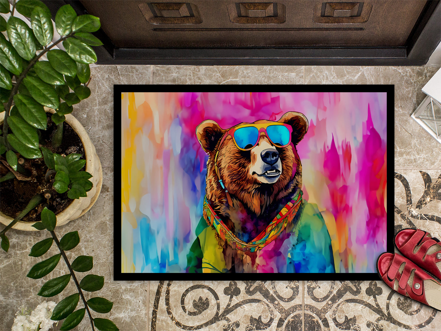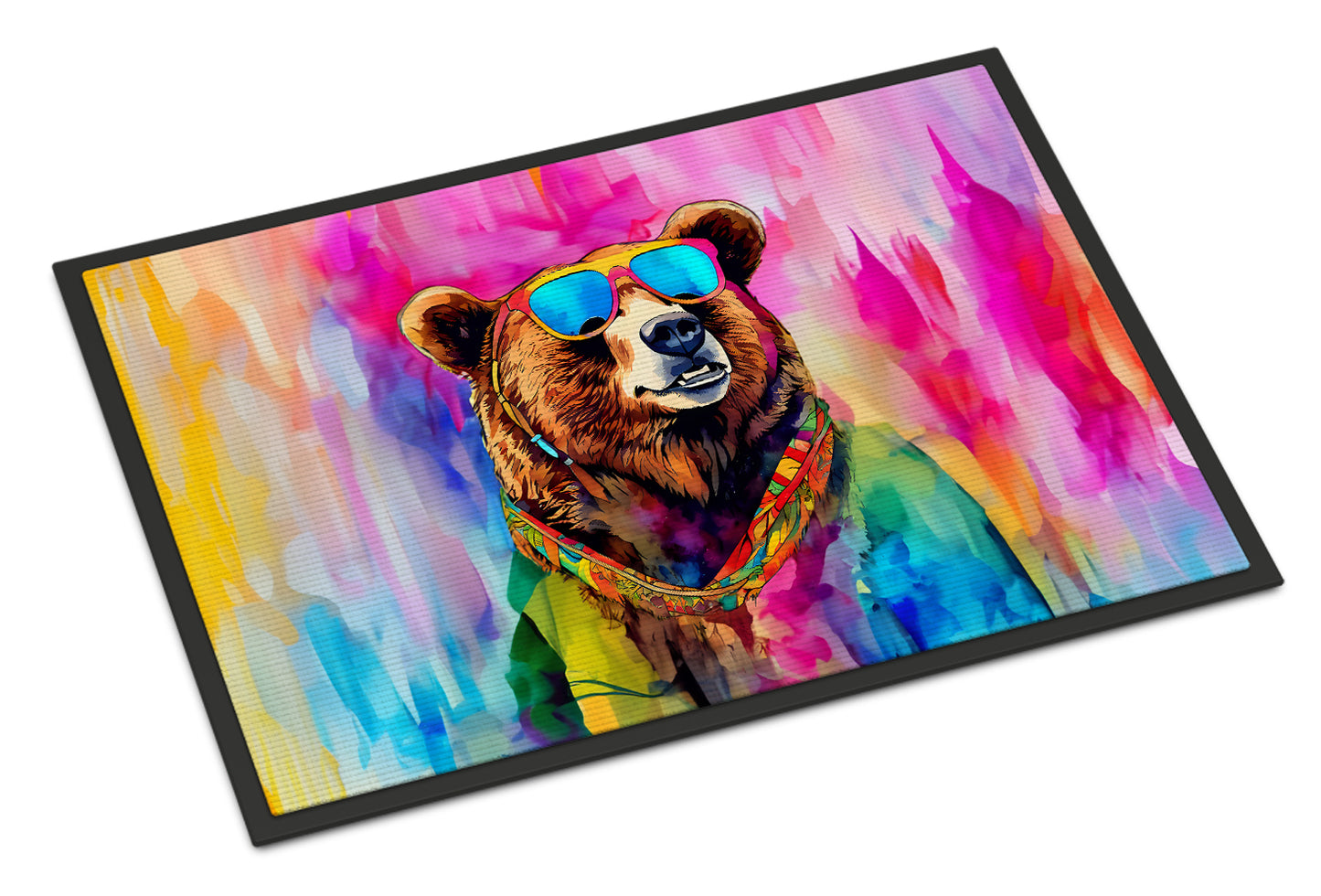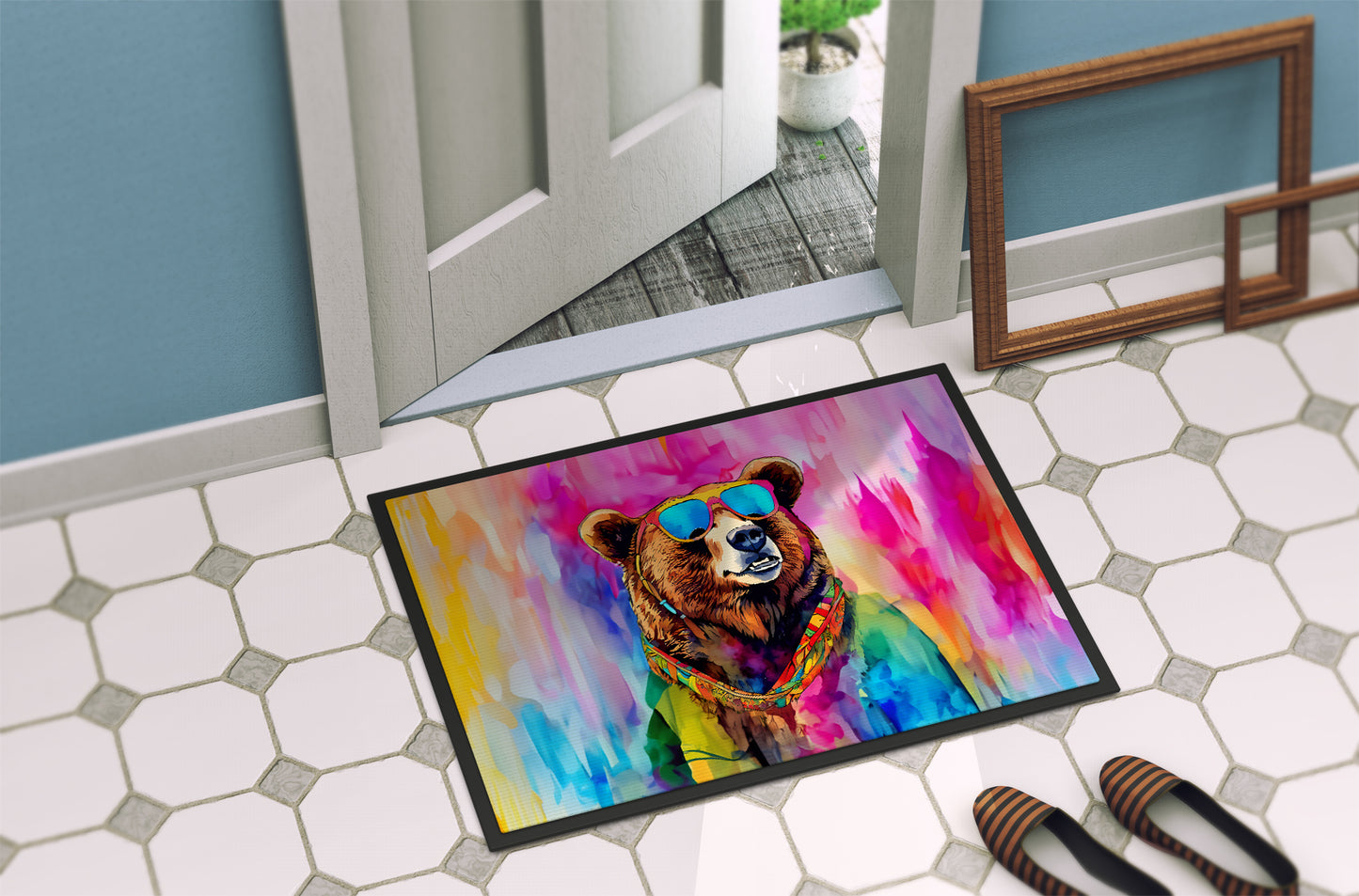 Doormat featuring breed specific Grizzly Bear artwork. Welcome your guests in style with our Artwork Door Mat, designed to withstand almost any weather condition. This mat, measuring approximately 18 by 27 inches, is held together by durable black binding tape. Its top layer, composed of polyester felt, is dyed with the eye-catching image you see on the mat. A few layers below provide the mat with stability, while its rubber bottom is stamped to help prevent slipping and ensures safety. Our mat works wonderfully as both an indoor or outdoor door mat. For cleaning, simply hose it off with water or use a power washer - no need for any cleaner that produces suds. Avoid scrubbing with a brush, instead, opt for the vacuum on floor setting. Designed manufactured and printed in the USA, this mat is a perfect addition to your porch, outdoor kitchen, entryway, or any indoor space. Its unique design makes it a charming decorative rug that greets your guests and adds a stylish touch to your home decor.