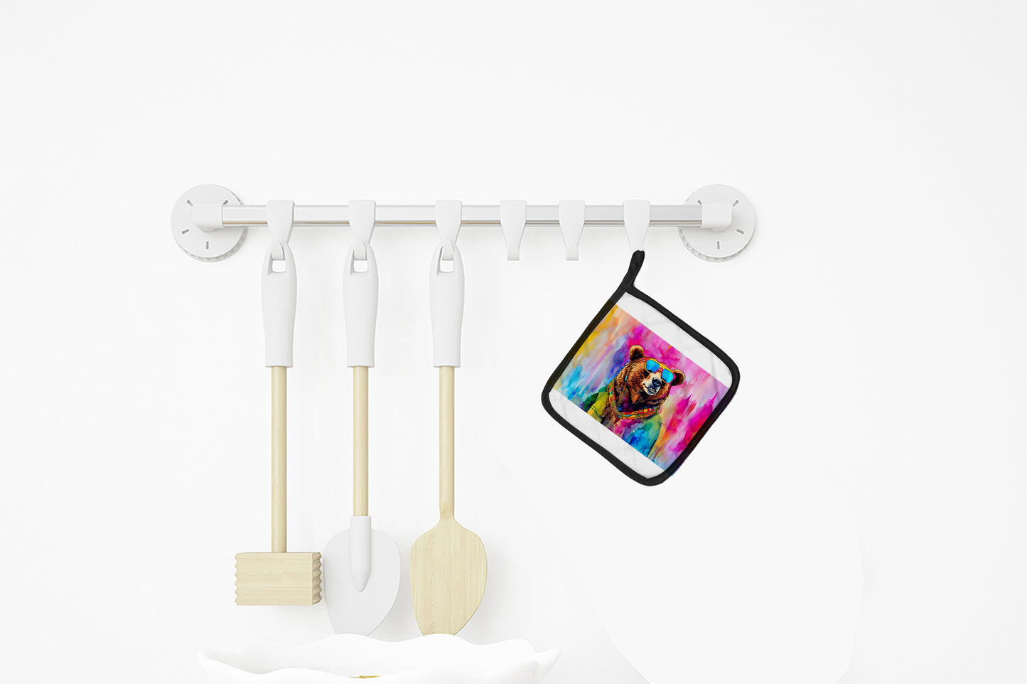 Hippie Animal Grizzly Bear Pair of Pot Holders