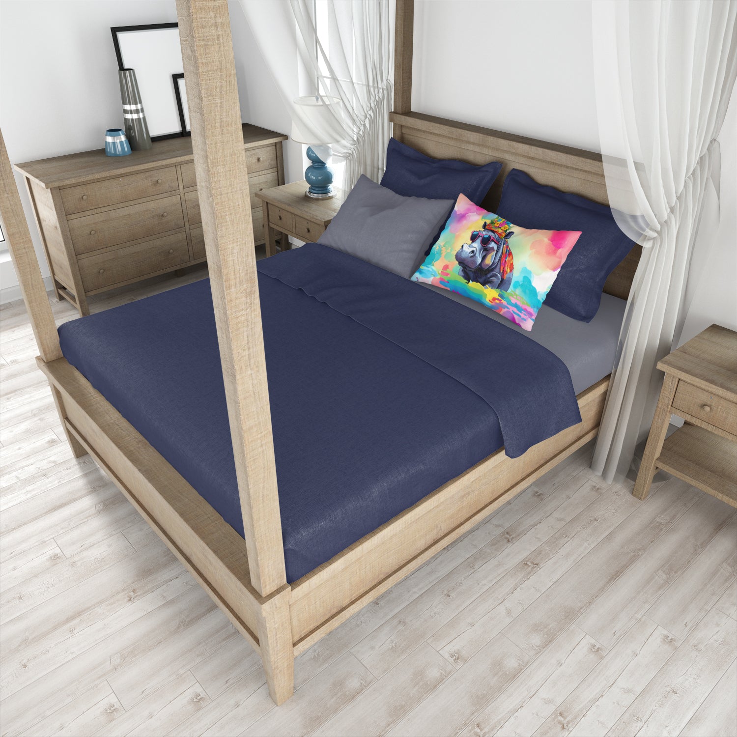 Standard Pillowcase featuring breed specific Hippopotamus artwork. Experience an upgrade in your sleeping comfort with our Fabric Standard Pillowcase, designed to balance style, comfort, and practicality. Showcasing vibrant artwork on the front and a standard white on the back, this pillowcase is more than a functional item�it's an expression of your personal style. Crafted from premium moisture-wicking material, our pillowcase ensures a pleasant sleeping experience. The breathable performance fabric allows for excellent air circulation, keeping you cool and comfortable throughout the night while also demonstrating exceptional quality. This pillowcase, measuring 30 x 20.5 inches with a slender 0.15 inch thickness, and weighing only 0.25 lbs, fits a standard pillow perfectly. Maintaining our pillowcase is hassle-free. It requires no ironing�simply wash in cold water and dry at medium heat. Bring art and luxury into your bedroom with our Fabric Standard Pillowcase. Its unique design and top-tier fabric contribute to a relaxing and rejuvenating sleep experience. Brighten your bedroom decor while enhancing your sleep with our high-performance pillowcase.