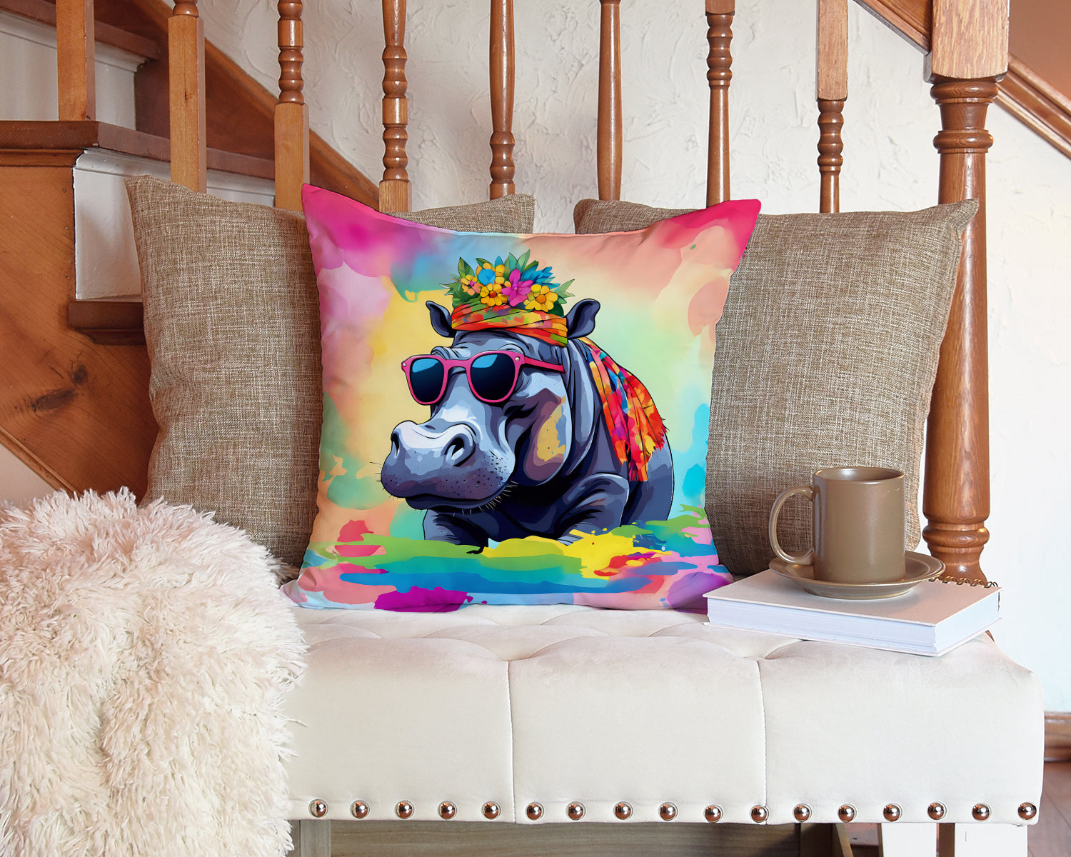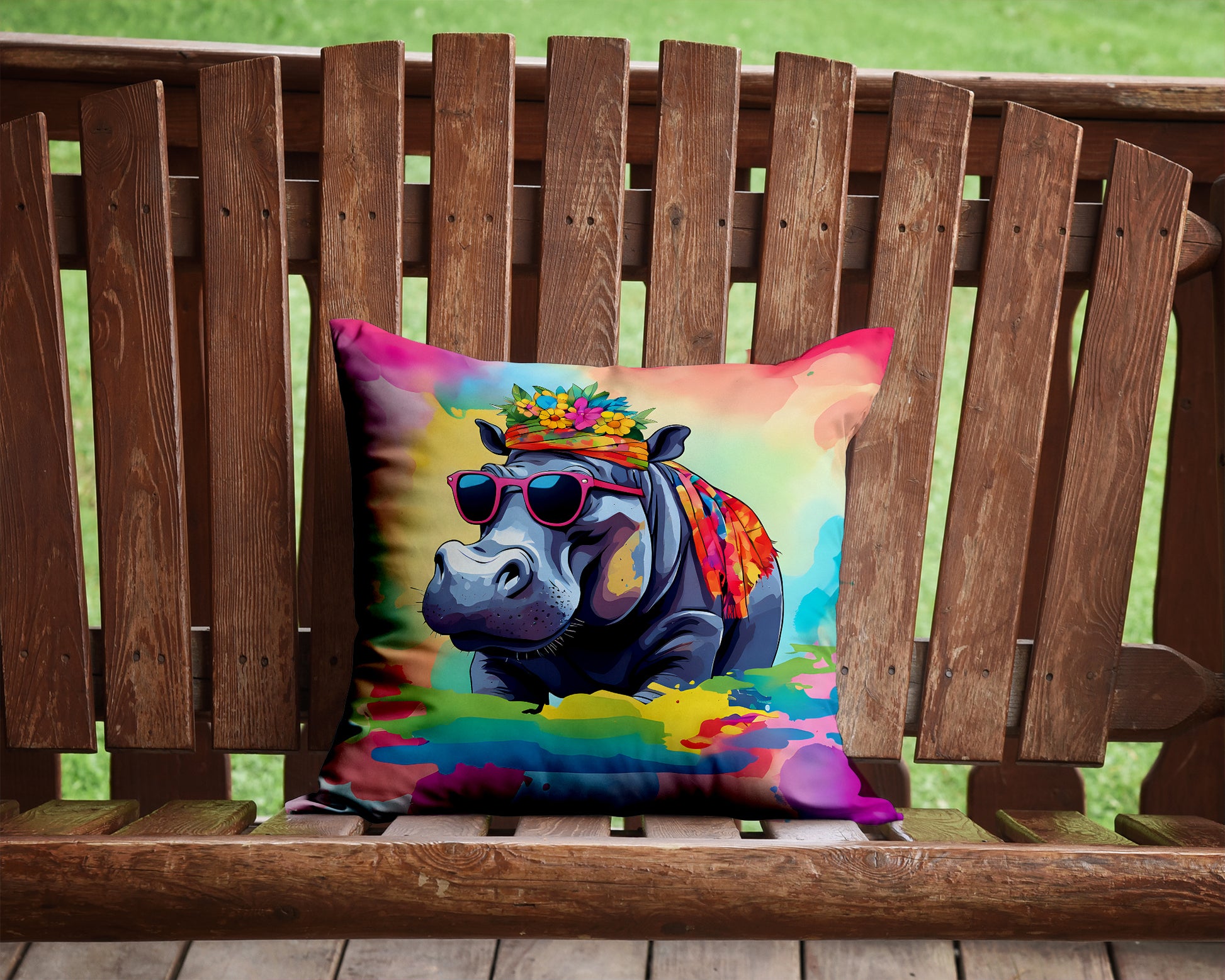 Throw Pillow featuring breed specific Hippopotamus artwork. Add a touch of vibrancy and comfort to your outdoor seating with Caroline's Treasures Fabric Decorative Pillow. Measuring approximately 14 inches by 14 inches, this outdoor pillow is crafted to elevate the appeal of your patio furniture, infusing it with vivid color and artistic flair. The pillow includes a 100% Polyester Fabric sham filled with a quality pillow form to provide superior comfort. Innovatively made from our brand new material, specifically woven for its water resistance, this pillow is designed for durability. The soft canvas fabric offers versatility in use, fit for your indoor couch or your outdoor patio, porch, or veranda. The fabric is dyed with colorfast dyes built for resilience against weather conditions, ensuring the pillow retains its beauty over time. Constructed by sewing three fabric pieces to create a sham, the polyester insert is then nestled inside to form the pillow, resulting in an overstuffed pillow that maintains its shape. Both the sham and the pillow insert are proudly made in the United States. As the pillows are handcrafted, there may be minor variations in size, further enhancing their unique charm. Experience comfort in style with Caroline's Treasures Fabric Decorative Pillow.