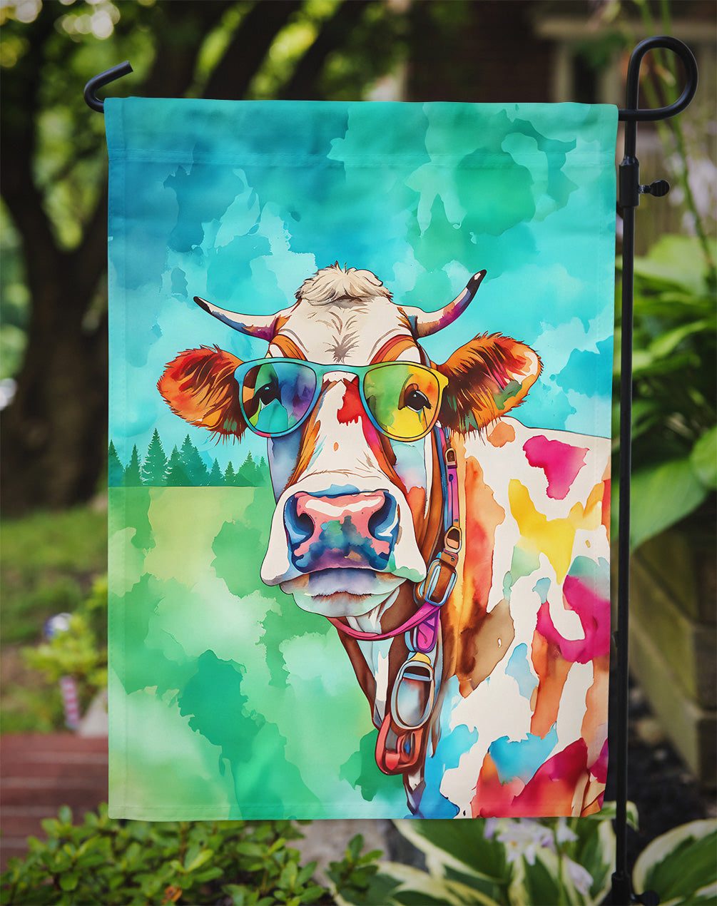 Garden Flag featuring breed specific Cow artwork. Enhance the beauty of your garden, patio, or yard with Caroline's Treasures Decorative Garden Flag, proudly made in the USA. Crafted from two pieces of thick, double-sided polyester fabric, this 2-ply garden flag is designed to withstand various weather conditions, making it water-resistant and weatherproof. Featuring correctly readable words on both sides, this garden flag offers a delightful visual experience from any angle. With its heavier weight, it stands out among other garden flags, ensuring stability and durability even in wind, rain, and snow. Measuring approximately 11 1/4 inches by 15 1/2 inches, this flag allows you to personalize your outdoor decor. It comes with a 1 1/2-inch sleeve sewn in, allowing easy attachment to any standard garden flag stand or garden size porch hanger (sold separately). Make a statement in your outdoor space with Caroline's Treasures Decorative Garden Flag, a vibrant and high-quality flag that adds color and personality to your surroundings. Proudly made in the USA, it's a symbol of quality craftsmanship and attention to detail.