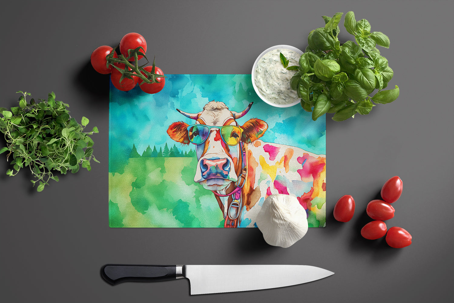 Glass Cutting Board featuring breed specific Cow artwork. Introduce your kitchen to the vibrant, large Decorative Glass Cutting Board from Caroline's Treasures. Crafted from resilient tempered glass, this board is not only a utilitarian necessity but also a colorful art piece. With its generous dimensions of 15 inches in height and 12 inches in length, it offers ample space for all your cutting needs. Every piece showcases captivating artwork from distinguished artists, bringing an aesthetic edge to your kitchen. Beyond its attractive design, this cutting board ensures your countertop stays pristine and unscathed, owing to its heat-resistant properties. Engineered with user convenience in mind, it features non-skid feet for stability, and rounded corners for additional safety. Its robust construction renders it virtually unbreakable, guaranteeing longevity. The board comes with protective feet bumpers, maintaining its position during use. This product is recommended to be hand washed only. Proudly printed and assembled in the United States, this cutting board exemplifies superior craftsmanship. With Caroline's Treasures' Decorative Glass Cutting Board, you're investing in a blend of functionality and artistic flair.