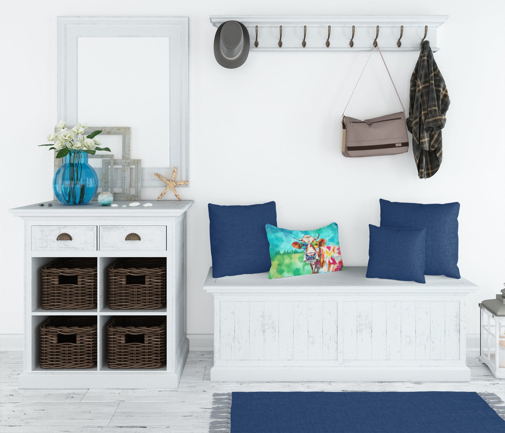 Throw Pillow featuring breed specific Cow artwork. Embrace the fusion of comfort and style with Caroline's Treasures Fabric Decorative Pillow. This 12x16 inch outdoor pillow is designed to complement your patio furniture, adding a splash of color and artistry to your outdoor setting. Constructed with a 100% Polyester Fabric pillow sham filled with a plush pillow form, this cushion is as comfortable as it is durable. Our outdoor pillow utilizes a novel fabric, meticulously woven for enhanced water resistance. This soft canvas material is equally suited for your indoor couch as well as outdoor settings such as the patio, porch, or veranda. To ensure enduring vibrance, we employ colorfast dyes resistant to fading even when subjected to weather elements. The making of this pillow involves the delicate sewing together of three fabric pieces to create a sham, into which a polyester insert is carefully placed. The result is an overstuffed pillow that tenaciously holds its shape. With both the sham and the pillow insert crafted in the United States, these handmade pillows are a testament to superior local craftsmanship. Note that as these pillows are handmade, sizes may slightly vary, enhancing their unique appeal. Enjoy comfort in style with Caroline's Treasures Fabric Decorative Pillow.