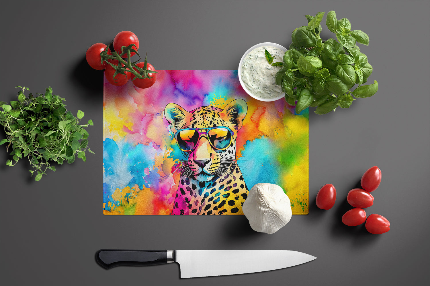 Glass Cutting Board featuring breed specific Leopard artwork. Introduce your kitchen to the vibrant, large Decorative Glass Cutting Board from Caroline's Treasures. Crafted from resilient tempered glass, this board is not only a utilitarian necessity but also a colorful art piece. With its generous dimensions of 15 inches in height and 12 inches in length, it offers ample space for all your cutting needs. Every piece showcases captivating artwork from distinguished artists, bringing an aesthetic edge to your kitchen. Beyond its attractive design, this cutting board ensures your countertop stays pristine and unscathed, owing to its heat-resistant properties. Engineered with user convenience in mind, it features non-skid feet for stability, and rounded corners for additional safety. Its robust construction renders it virtually unbreakable, guaranteeing longevity. The board comes with protective feet bumpers, maintaining its position during use. This product is recommended to be hand washed only. Proudly printed and assembled in the United States, this cutting board exemplifies superior craftsmanship. With Caroline's Treasures' Decorative Glass Cutting Board, you're investing in a blend of functionality and artistic flair.
