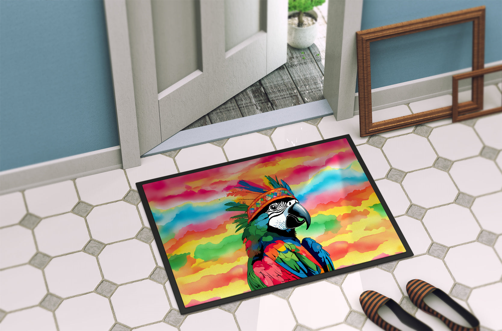 Doormat featuring breed specific Parrot artwork. Welcome your guests in style with our Artwork Door Mat, designed to withstand almost any weather condition. This mat, measuring approximately 18 by 27 inches, is held together by durable black binding tape. Its top layer, composed of polyester felt, is dyed with the eye-catching image you see on the mat. A few layers below provide the mat with stability, while its rubber bottom is stamped to help prevent slipping and ensures safety. Our mat works wonderfully as both an indoor or outdoor door mat. For cleaning, simply hose it off with water or use a power washer - no need for any cleaner that produces suds. Avoid scrubbing with a brush, instead, opt for the vacuum on floor setting. Designed manufactured and printed in the USA, this mat is a perfect addition to your porch, outdoor kitchen, entryway, or any indoor space. Its unique design makes it a charming decorative rug that greets your guests and adds a stylish touch to your home decor.