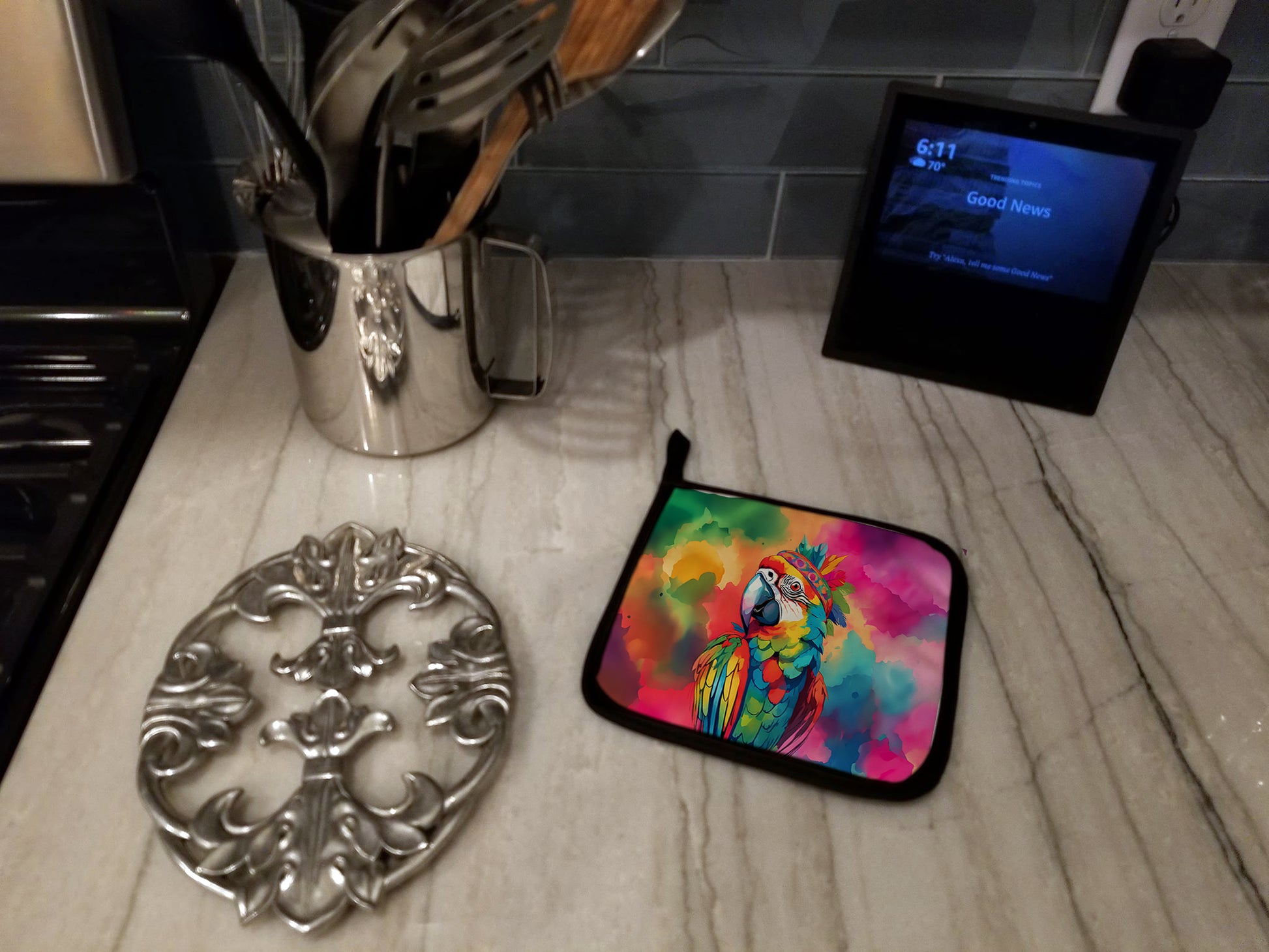 Hippie Animal Parrot Pair of Pot Holders