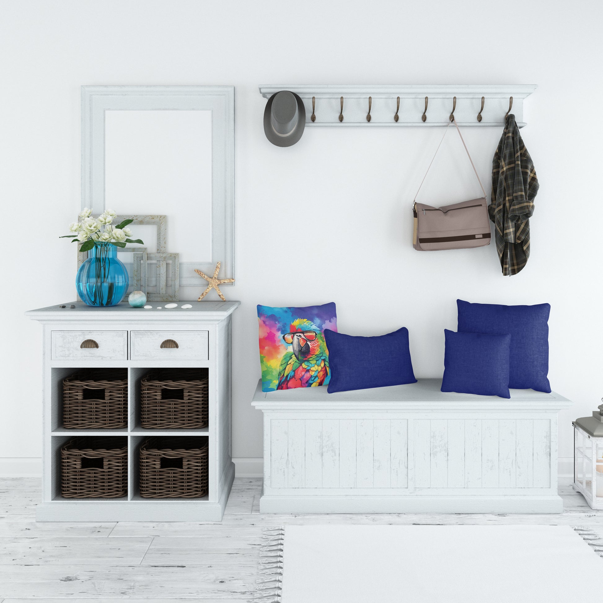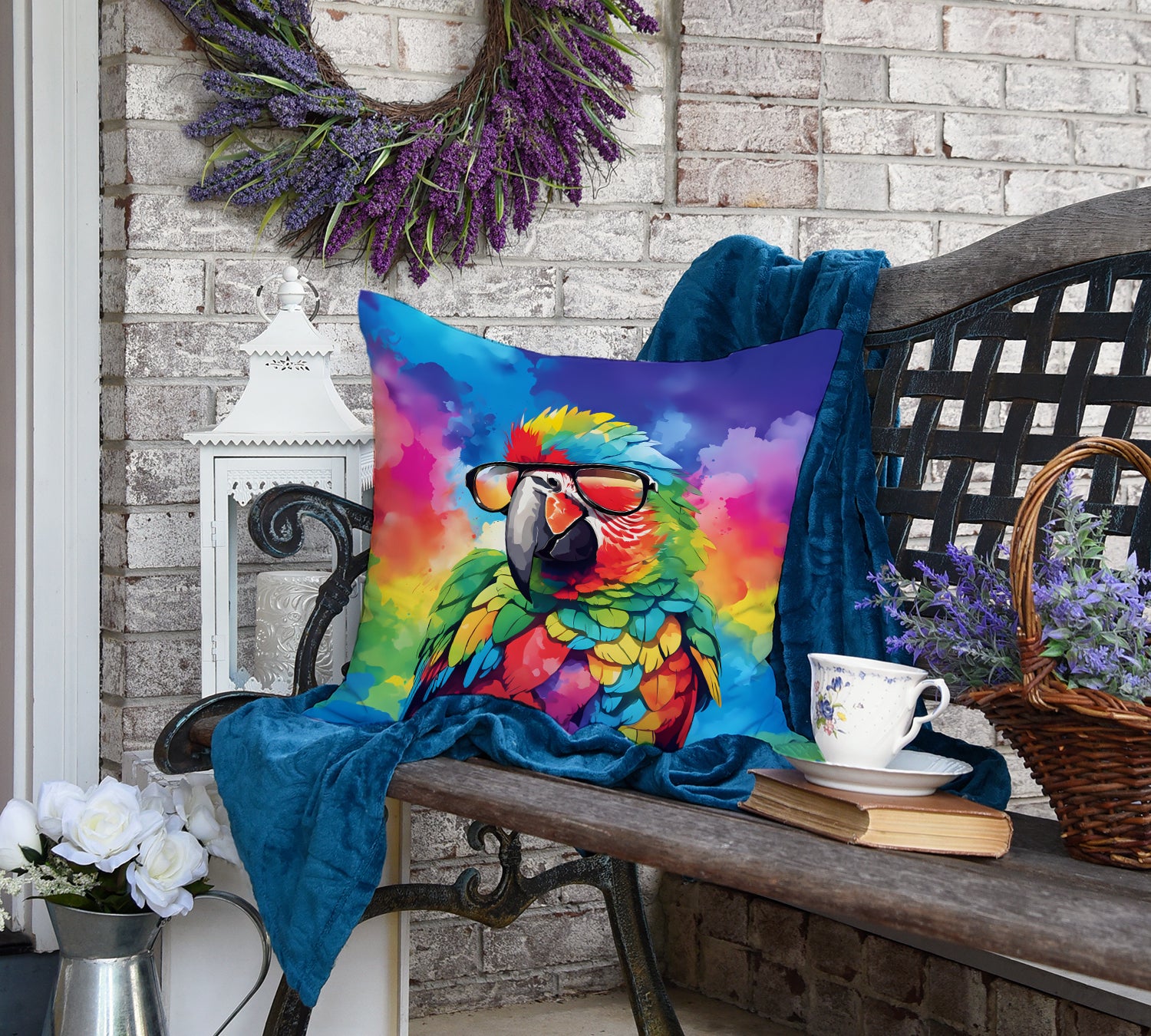 Throw Pillow featuring breed specific Parrot artwork. Revitalize your outdoor or indoor living space with Caroline's Treasures 18x18 Fabric Decorative Pillow. With a generously sized dimension of approximately 18 inches by 18 inches, this pillow makes a comfortable and aesthetic addition to any seating area. Made from a unique, water-resistant material developed by Caroline's Treasures, the pillow sham is 100% polyester fabric that's durable and ready to weather any condition. Its vibrant, full-color artwork will not fade over time as it is dyed with color-fast dyes. Whether you place it on your patio furniture, porch, veranda, or indoor couch, its soft canvas fabric ensures a cozy experience. The pillow is handcrafted in the United States, featuring a sham created from three pieces of fabric and a polyester insert for enduring shape and overstuffed comfort. Despite being robustly built to endure the outdoors, it is as soft and snug as your favorite indoor cushions. Please note, as all our pillows are handmade, sizes may vary slightly, adding to the charm of this unique decorative item.