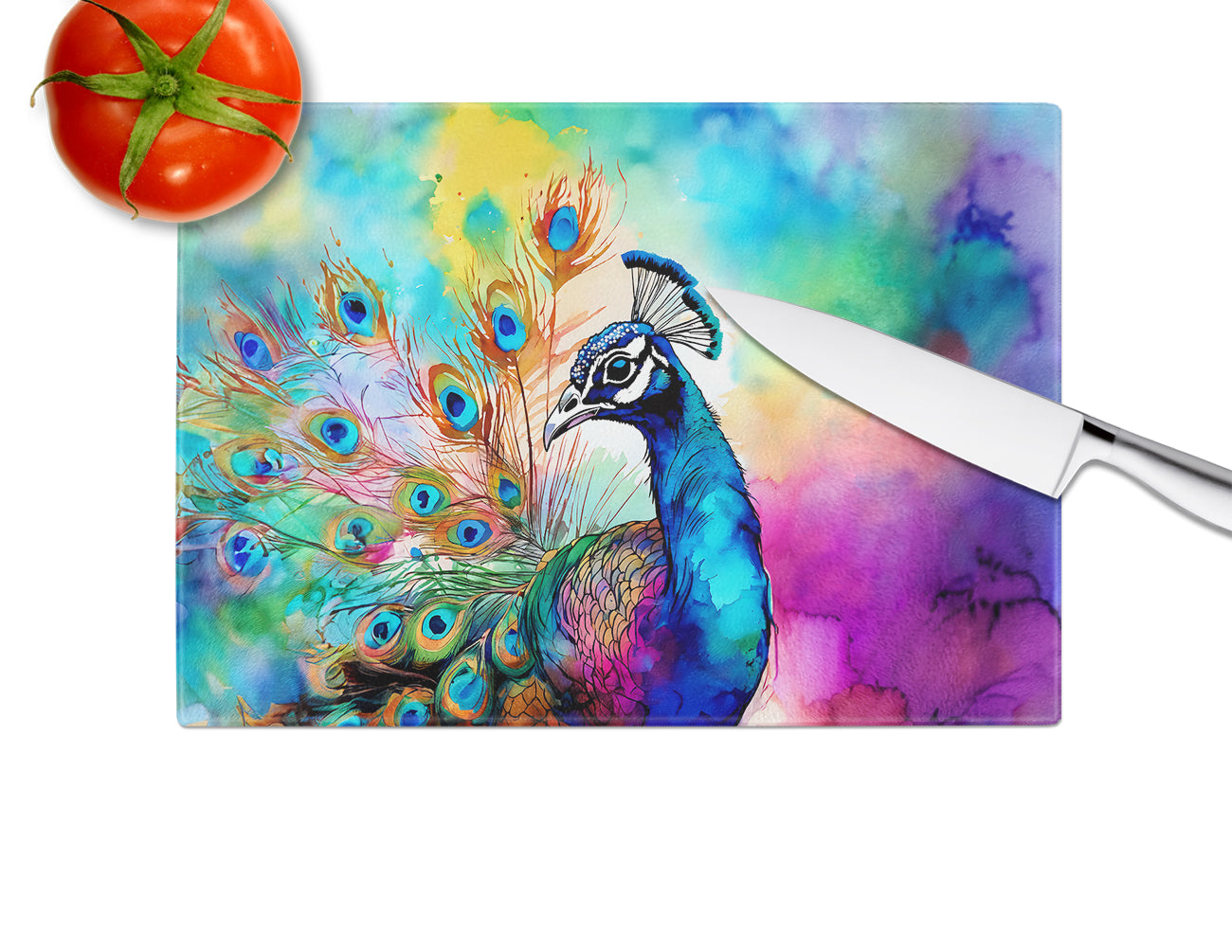 Hippie Animal Peacock Glass Cutting Board