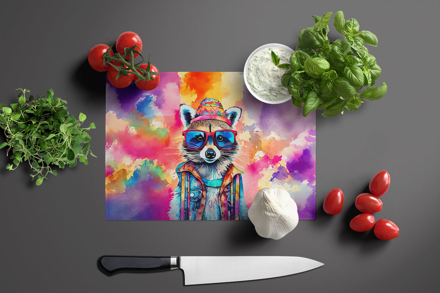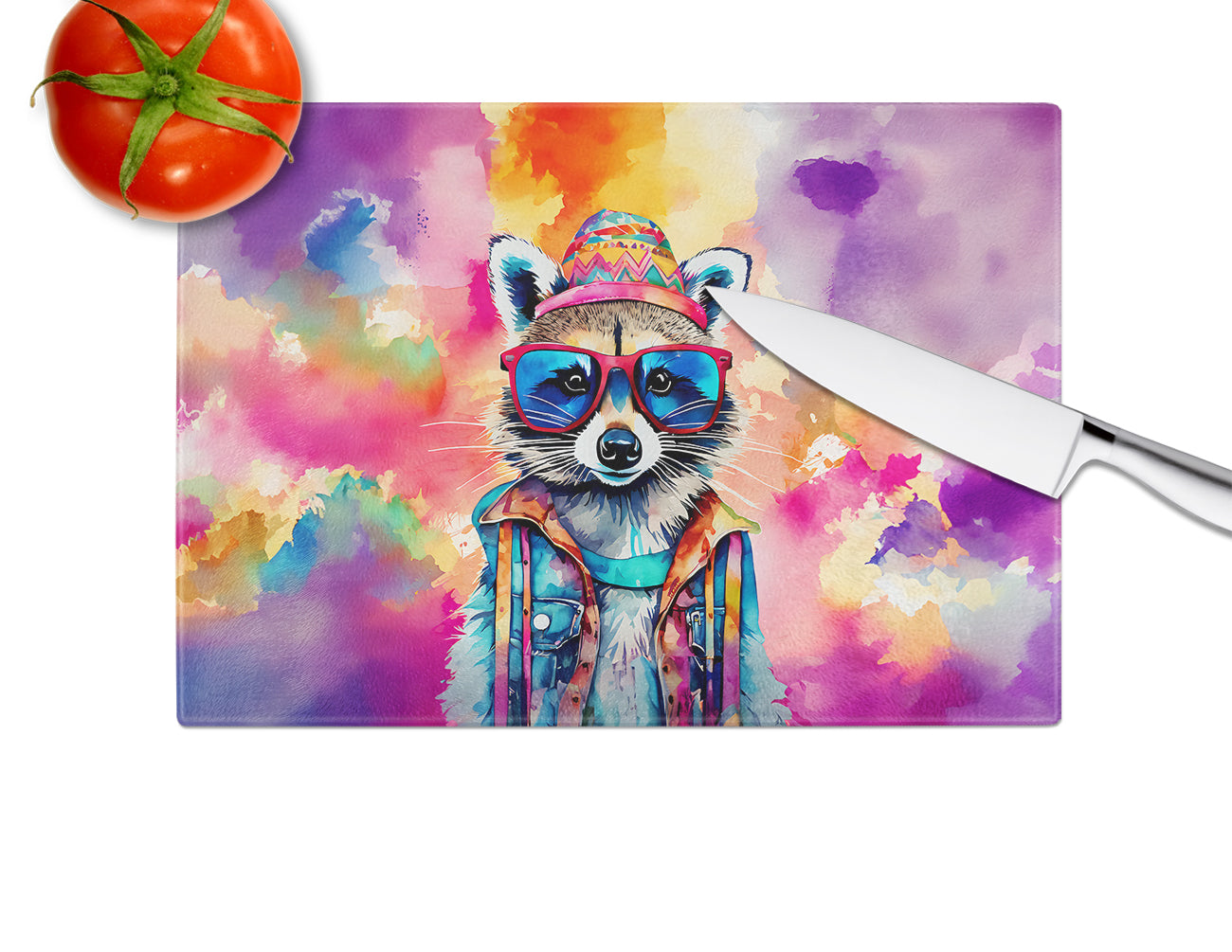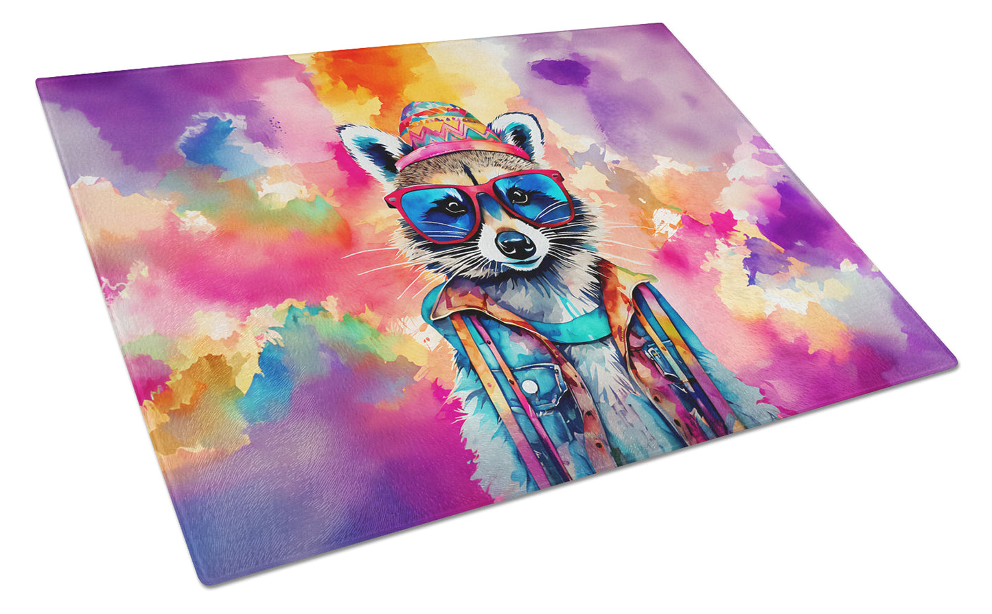 Hippie Animal Raccoon Glass Cutting Board