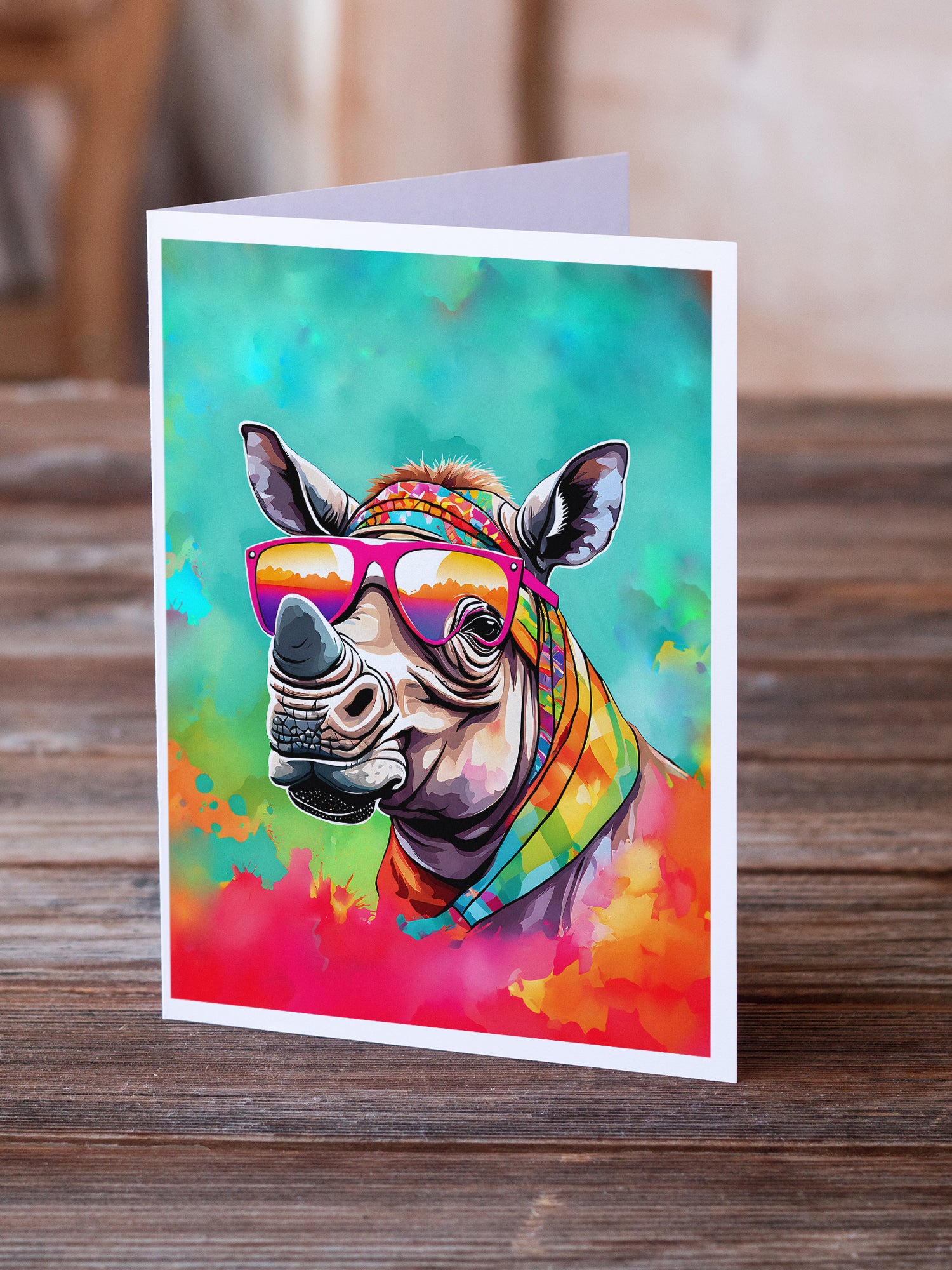 Hippie Animal Rhinoceros Greeting Cards Pack of 8