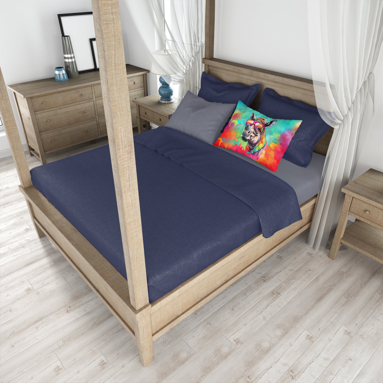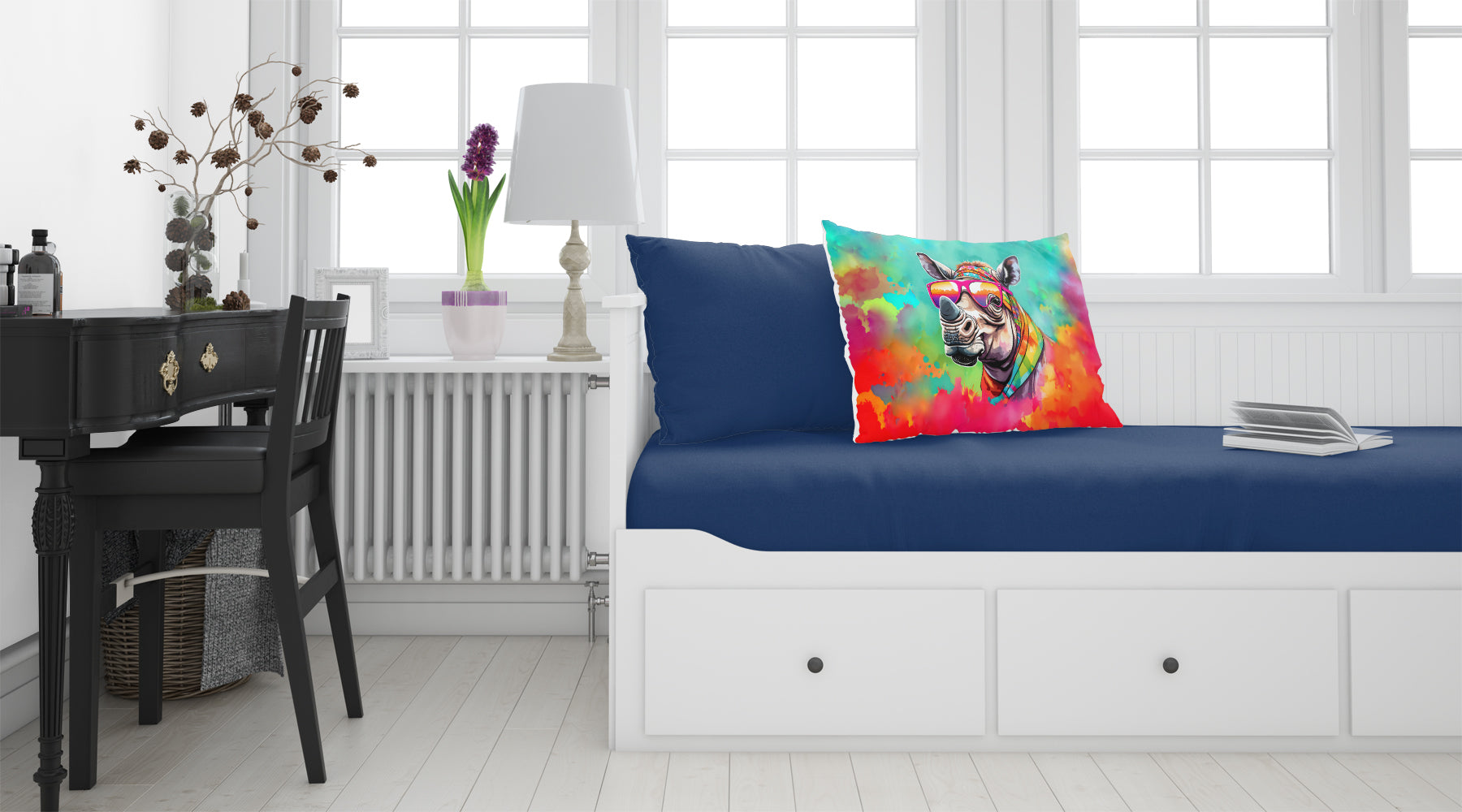 Standard Pillowcase featuring breed specific Rhinoceros artwork. Experience an upgrade in your sleeping comfort with our Fabric Standard Pillowcase, designed to balance style, comfort, and practicality. Showcasing vibrant artwork on the front and a standard white on the back, this pillowcase is more than a functional item�it's an expression of your personal style. Crafted from premium moisture-wicking material, our pillowcase ensures a pleasant sleeping experience. The breathable performance fabric allows for excellent air circulation, keeping you cool and comfortable throughout the night while also demonstrating exceptional quality. This pillowcase, measuring 30 x 20.5 inches with a slender 0.15 inch thickness, and weighing only 0.25 lbs, fits a standard pillow perfectly. Maintaining our pillowcase is hassle-free. It requires no ironing�simply wash in cold water and dry at medium heat. Bring art and luxury into your bedroom with our Fabric Standard Pillowcase. Its unique design and top-tier fabric contribute to a relaxing and rejuvenating sleep experience. Brighten your bedroom decor while enhancing your sleep with our high-performance pillowcase.