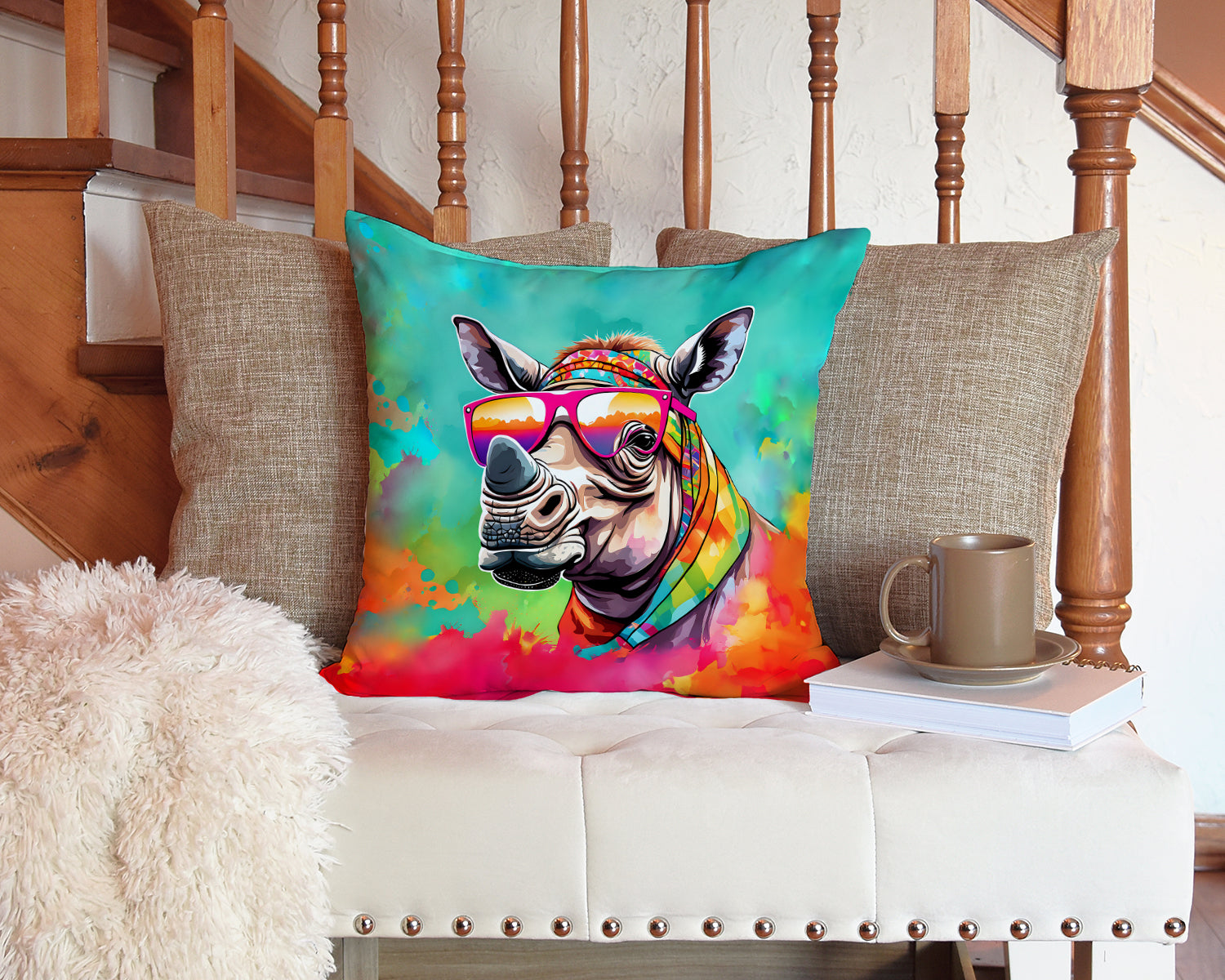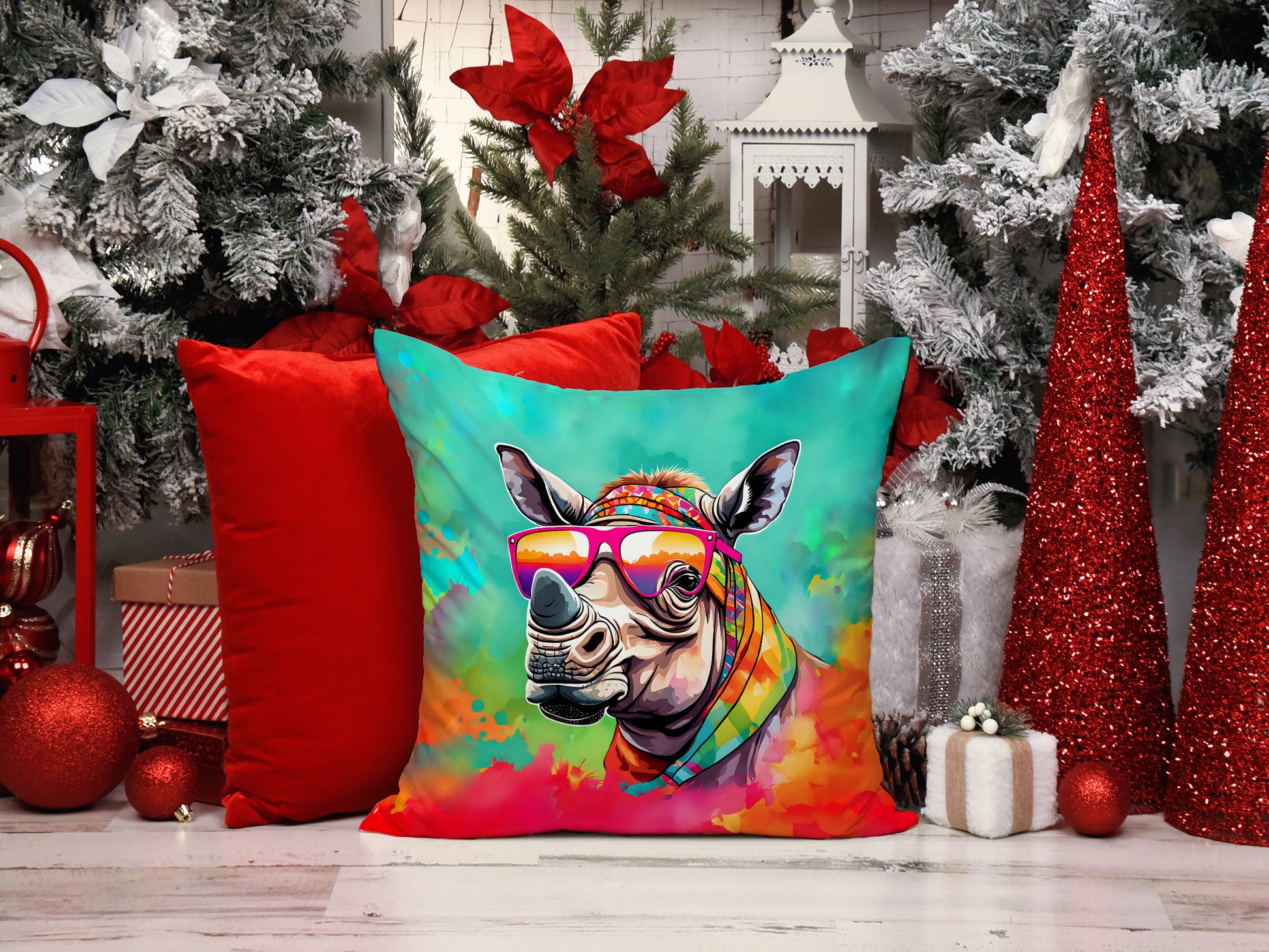Throw Pillow featuring breed specific Rhinoceros artwork. Add a touch of vibrancy and comfort to your outdoor seating with Caroline's Treasures Fabric Decorative Pillow. Measuring approximately 14 inches by 14 inches, this outdoor pillow is crafted to elevate the appeal of your patio furniture, infusing it with vivid color and artistic flair. The pillow includes a 100% Polyester Fabric sham filled with a quality pillow form to provide superior comfort. Innovatively made from our brand new material, specifically woven for its water resistance, this pillow is designed for durability. The soft canvas fabric offers versatility in use, fit for your indoor couch or your outdoor patio, porch, or veranda. The fabric is dyed with colorfast dyes built for resilience against weather conditions, ensuring the pillow retains its beauty over time. Constructed by sewing three fabric pieces to create a sham, the polyester insert is then nestled inside to form the pillow, resulting in an overstuffed pillow that maintains its shape. Both the sham and the pillow insert are proudly made in the United States. As the pillows are handcrafted, there may be minor variations in size, further enhancing their unique charm. Experience comfort in style with Caroline's Treasures Fabric Decorative Pillow.