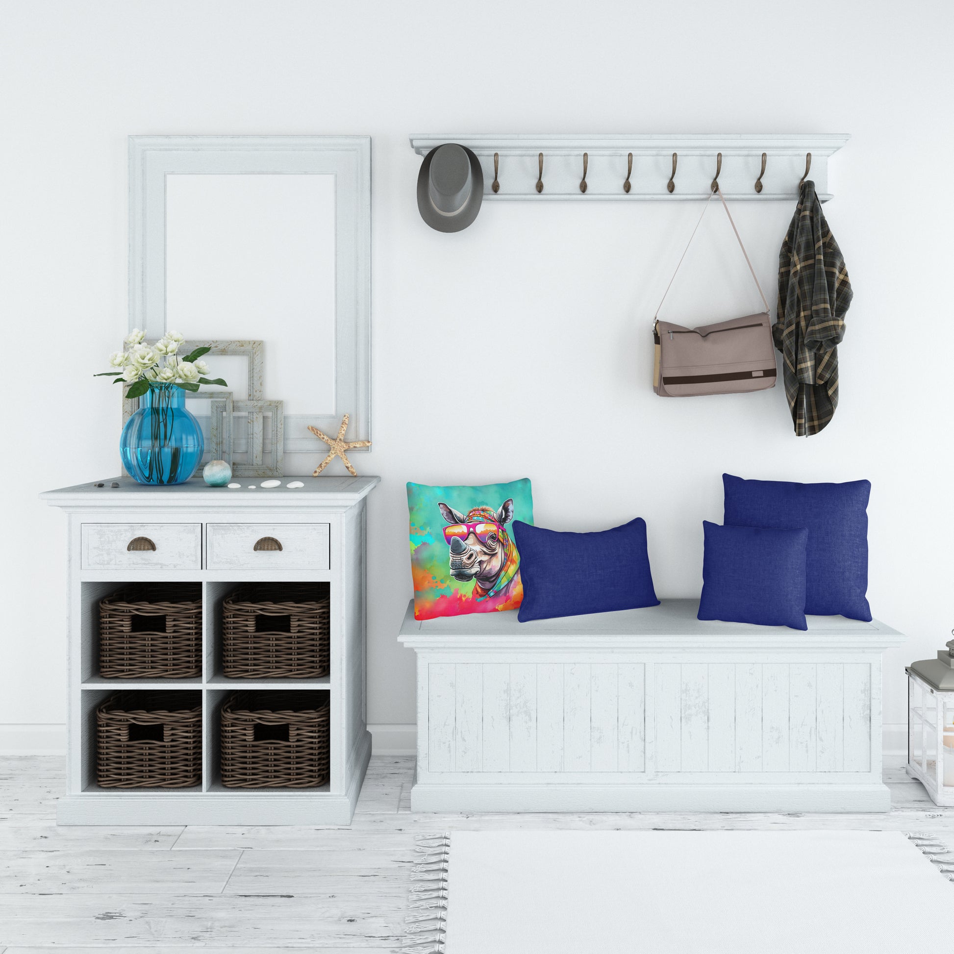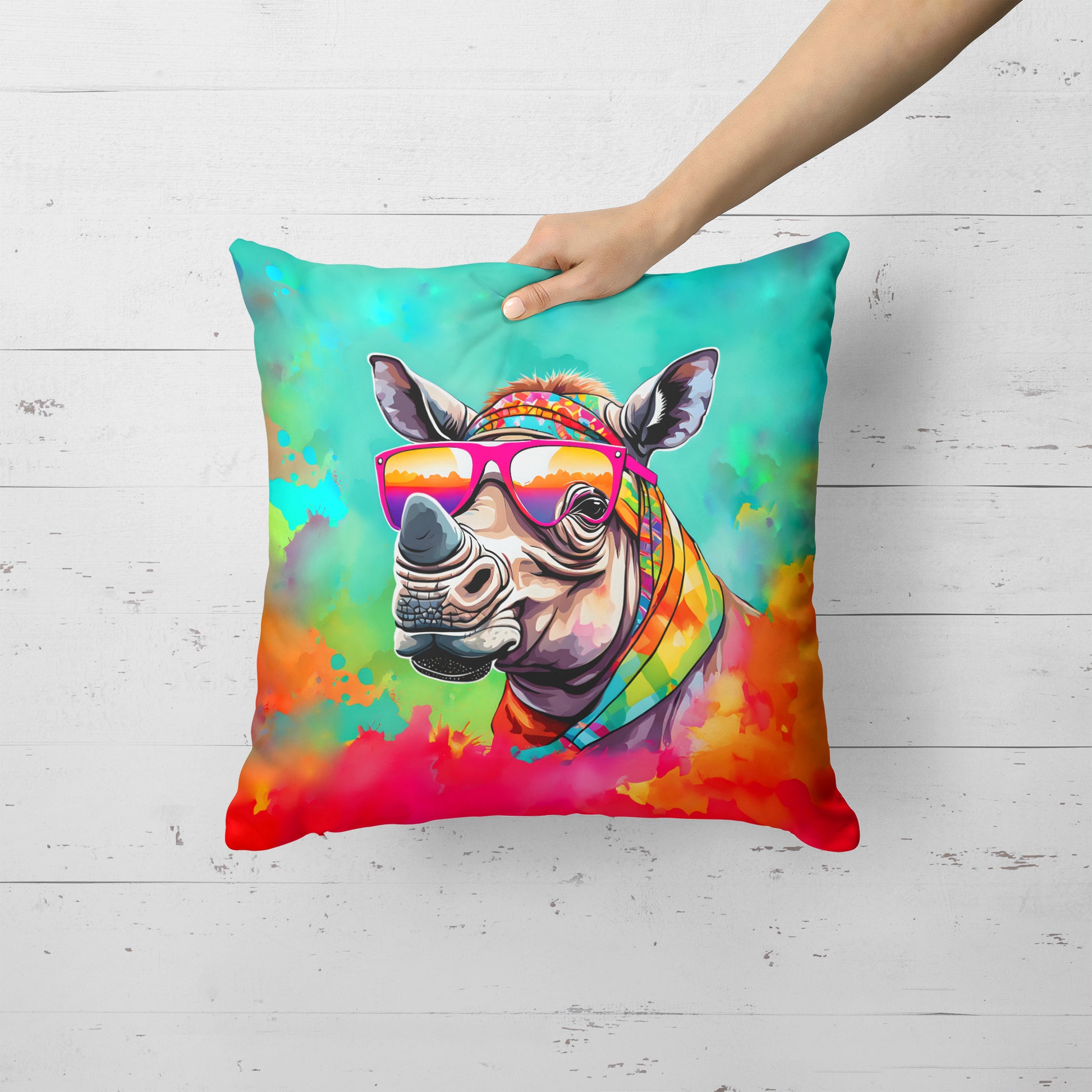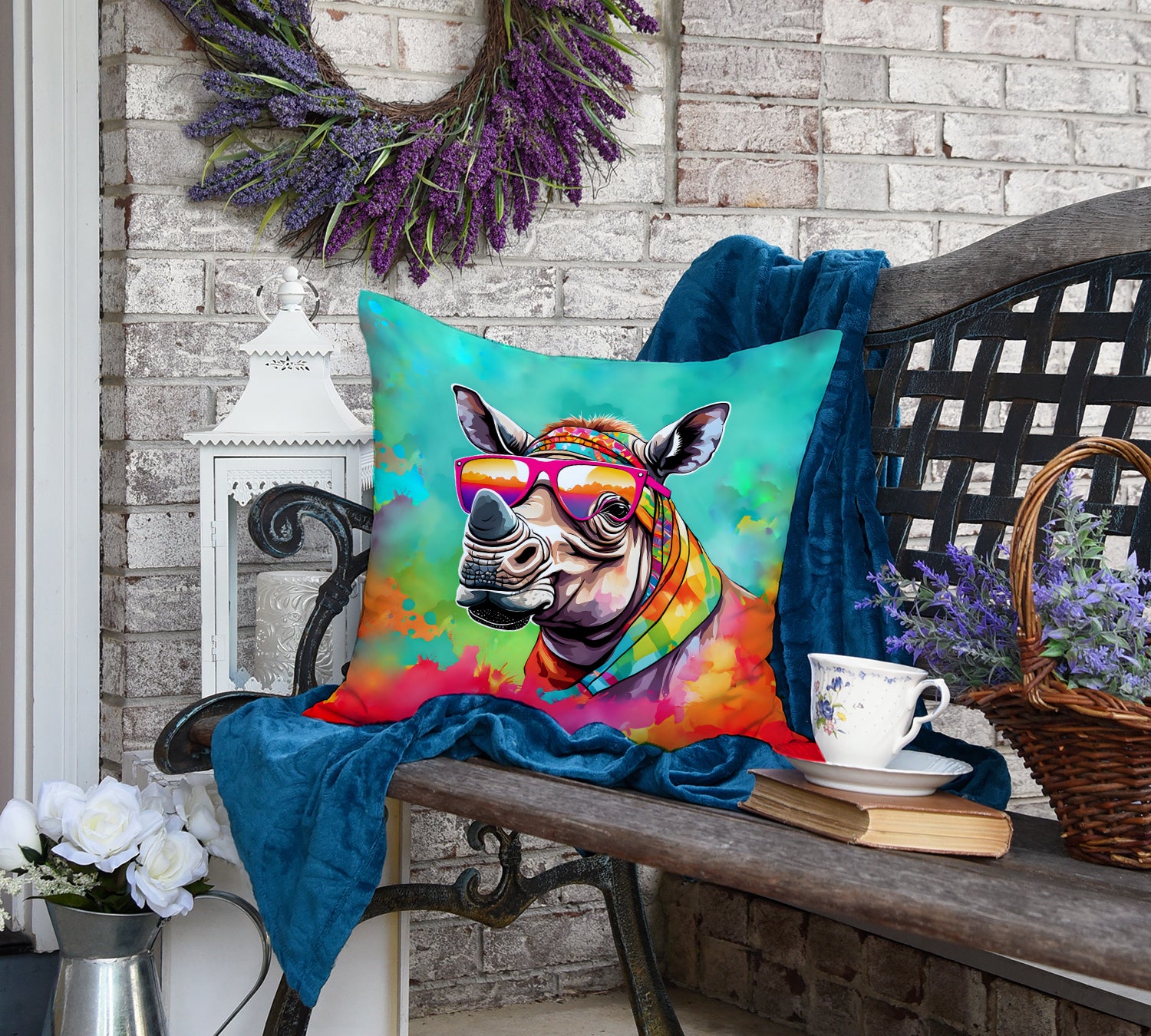 Throw Pillow featuring breed specific Rhinoceros artwork. Revitalize your outdoor or indoor living space with Caroline's Treasures 18x18 Fabric Decorative Pillow. With a generously sized dimension of approximately 18 inches by 18 inches, this pillow makes a comfortable and aesthetic addition to any seating area. Made from a unique, water-resistant material developed by Caroline's Treasures, the pillow sham is 100% polyester fabric that's durable and ready to weather any condition. Its vibrant, full-color artwork will not fade over time as it is dyed with color-fast dyes. Whether you place it on your patio furniture, porch, veranda, or indoor couch, its soft canvas fabric ensures a cozy experience. The pillow is handcrafted in the United States, featuring a sham created from three pieces of fabric and a polyester insert for enduring shape and overstuffed comfort. Despite being robustly built to endure the outdoors, it is as soft and snug as your favorite indoor cushions. Please note, as all our pillows are handmade, sizes may vary slightly, adding to the charm of this unique decorative item.