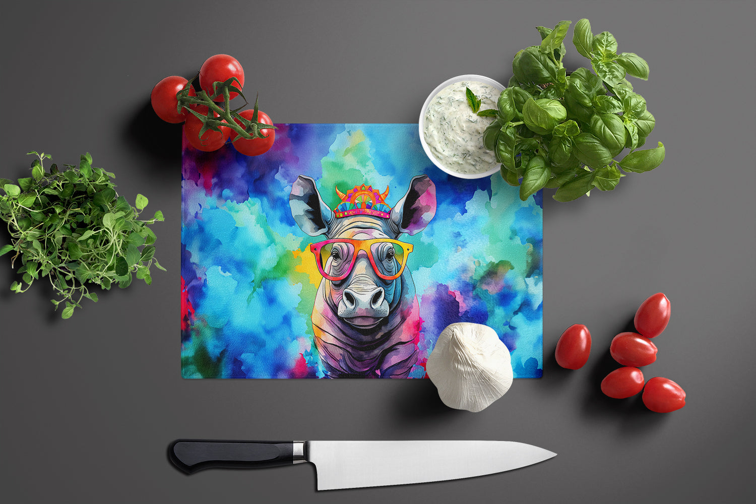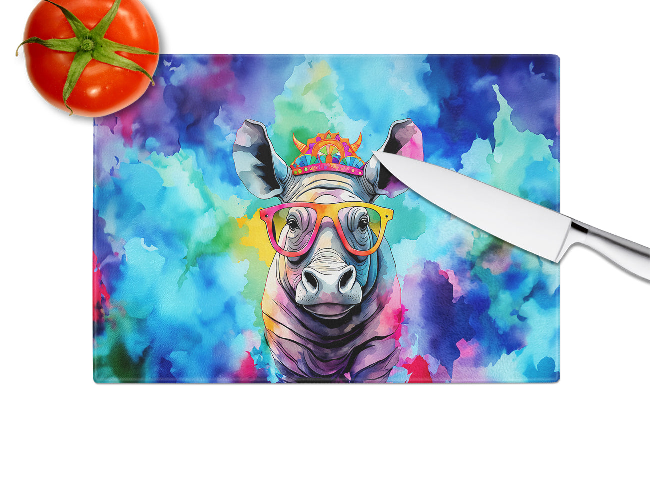 Hippie Animal Rhinoceros Glass Cutting Board