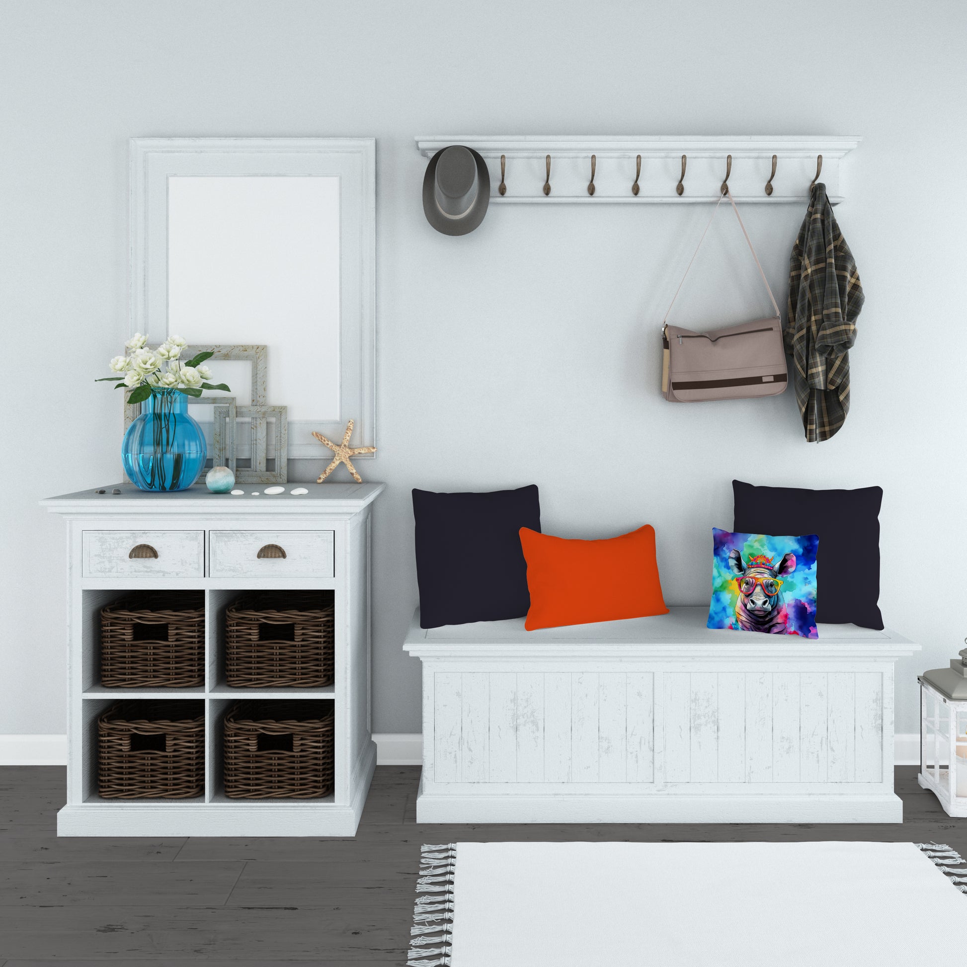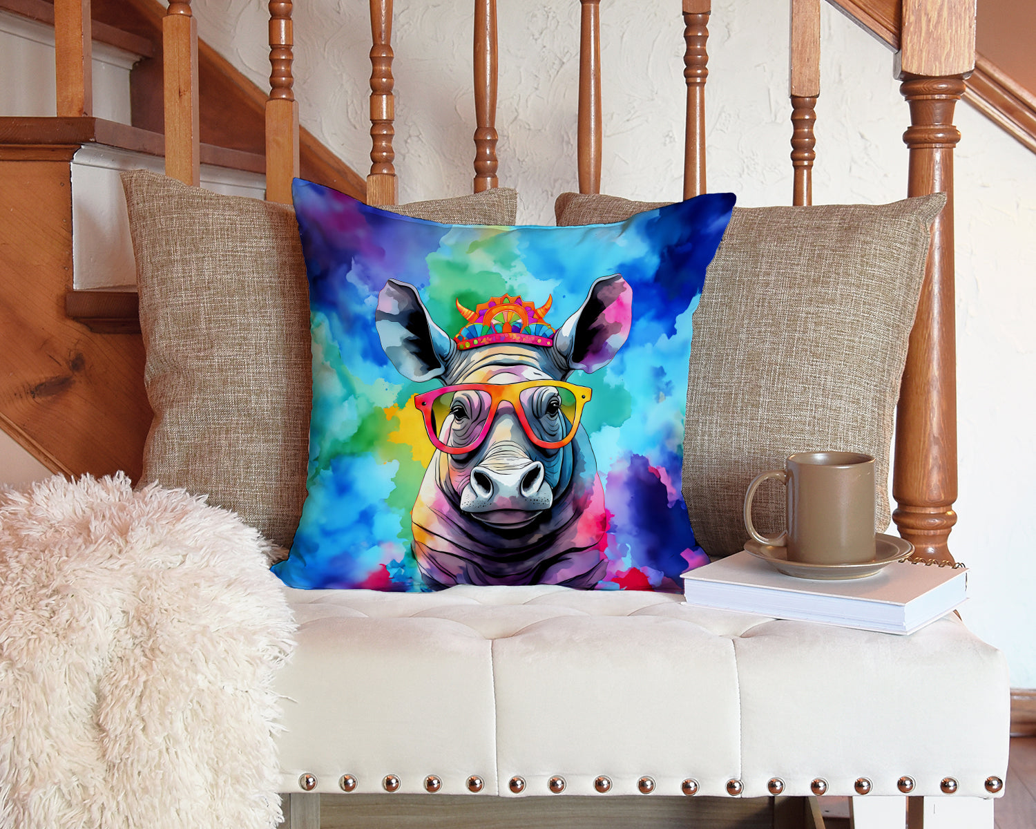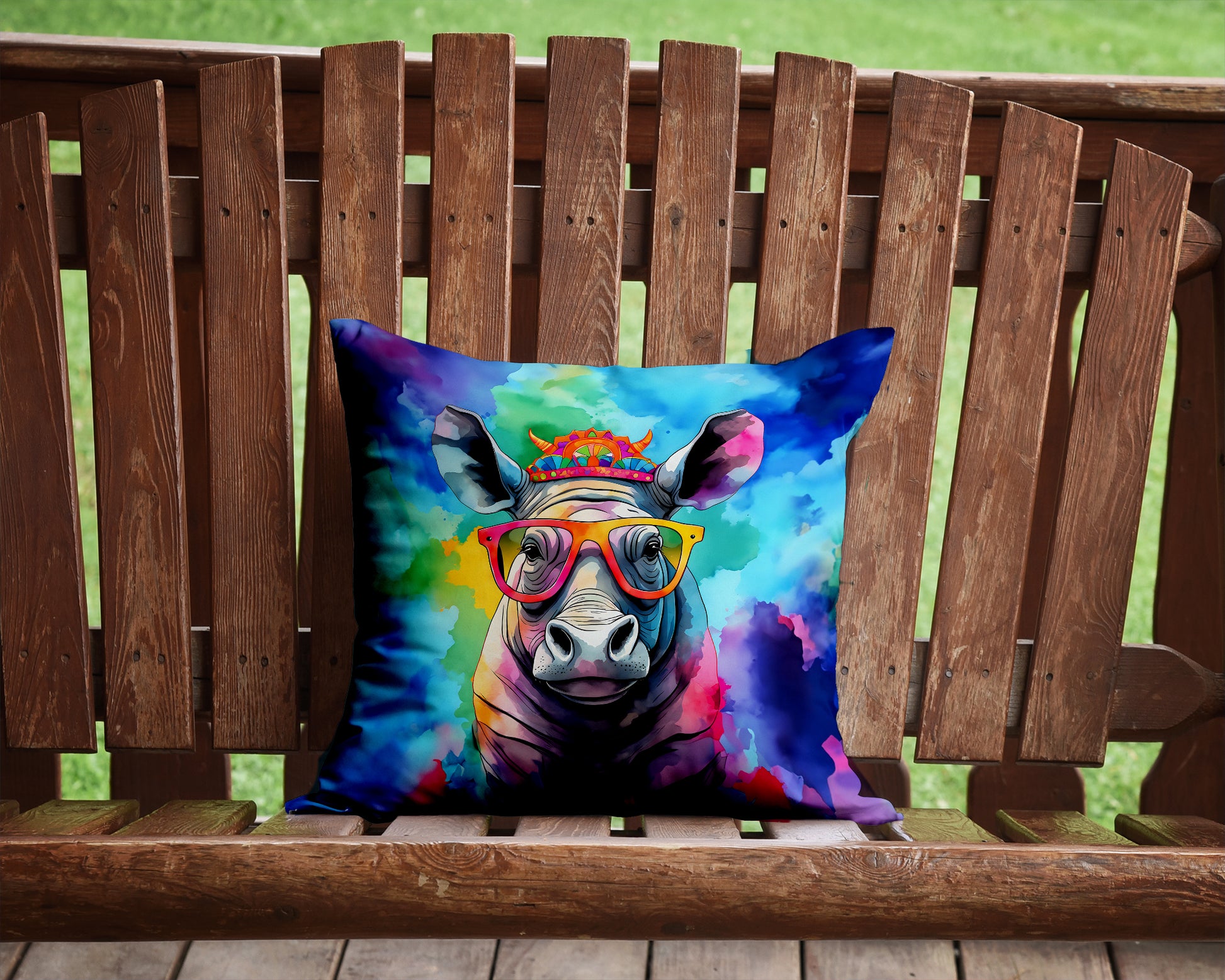 Throw Pillow featuring breed specific Rhinoceros artwork. Add a touch of vibrancy and comfort to your outdoor seating with Caroline's Treasures Fabric Decorative Pillow. Measuring approximately 14 inches by 14 inches, this outdoor pillow is crafted to elevate the appeal of your patio furniture, infusing it with vivid color and artistic flair. The pillow includes a 100% Polyester Fabric sham filled with a quality pillow form to provide superior comfort. Innovatively made from our brand new material, specifically woven for its water resistance, this pillow is designed for durability. The soft canvas fabric offers versatility in use, fit for your indoor couch or your outdoor patio, porch, or veranda. The fabric is dyed with colorfast dyes built for resilience against weather conditions, ensuring the pillow retains its beauty over time. Constructed by sewing three fabric pieces to create a sham, the polyester insert is then nestled inside to form the pillow, resulting in an overstuffed pillow that maintains its shape. Both the sham and the pillow insert are proudly made in the United States. As the pillows are handcrafted, there may be minor variations in size, further enhancing their unique charm. Experience comfort in style with Caroline's Treasures Fabric Decorative Pillow.