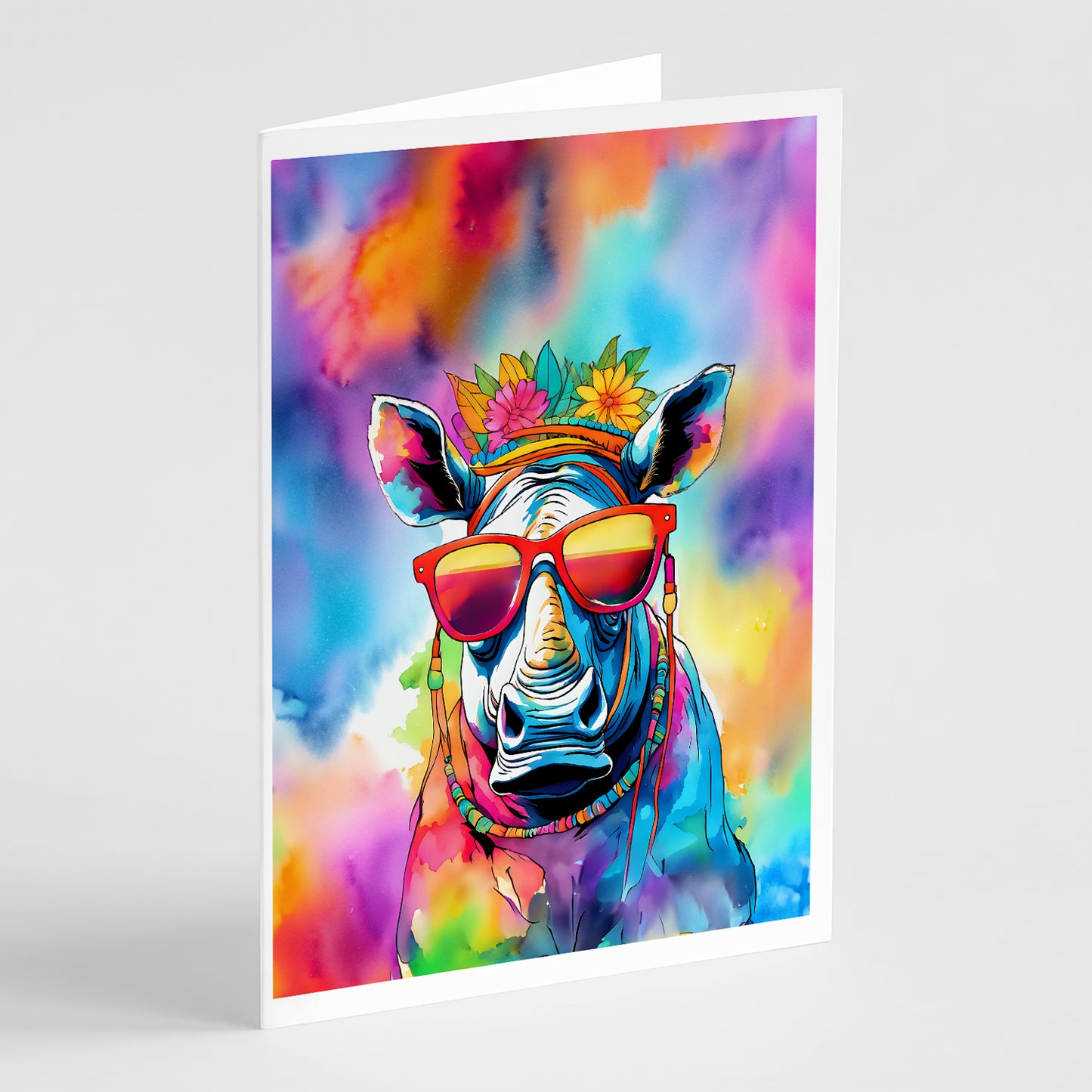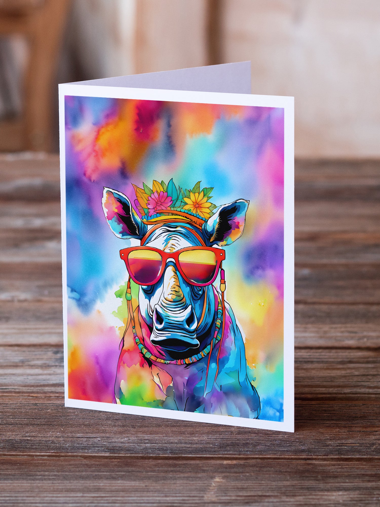 Hippie Animal Rhinoceros Greeting Cards Pack of 8