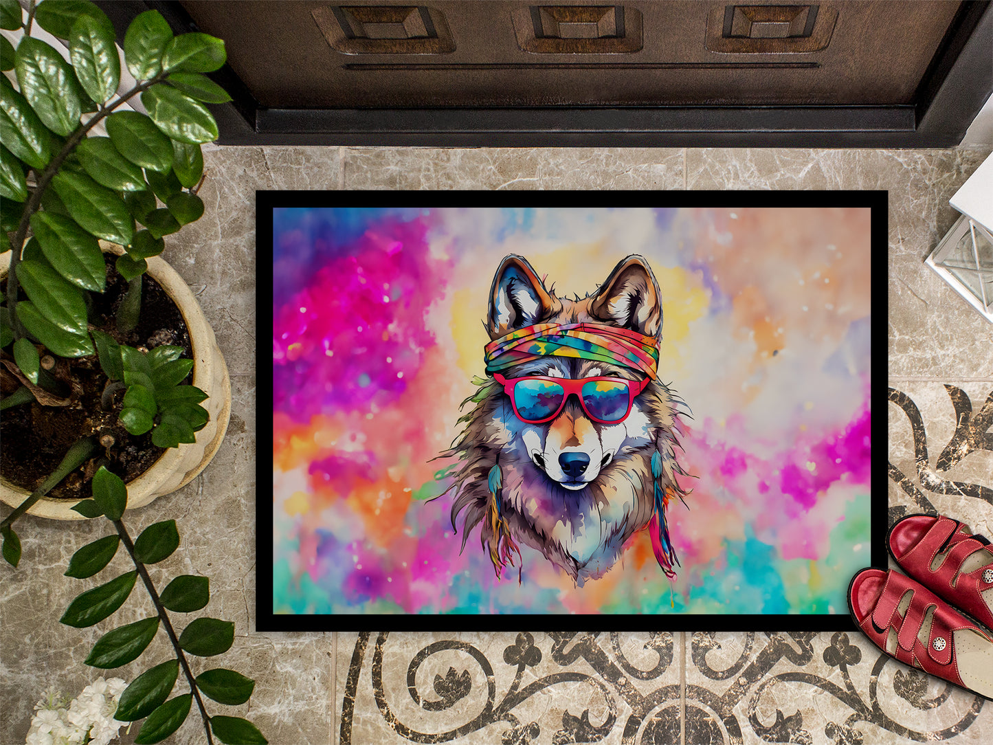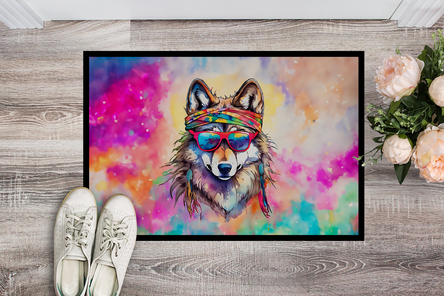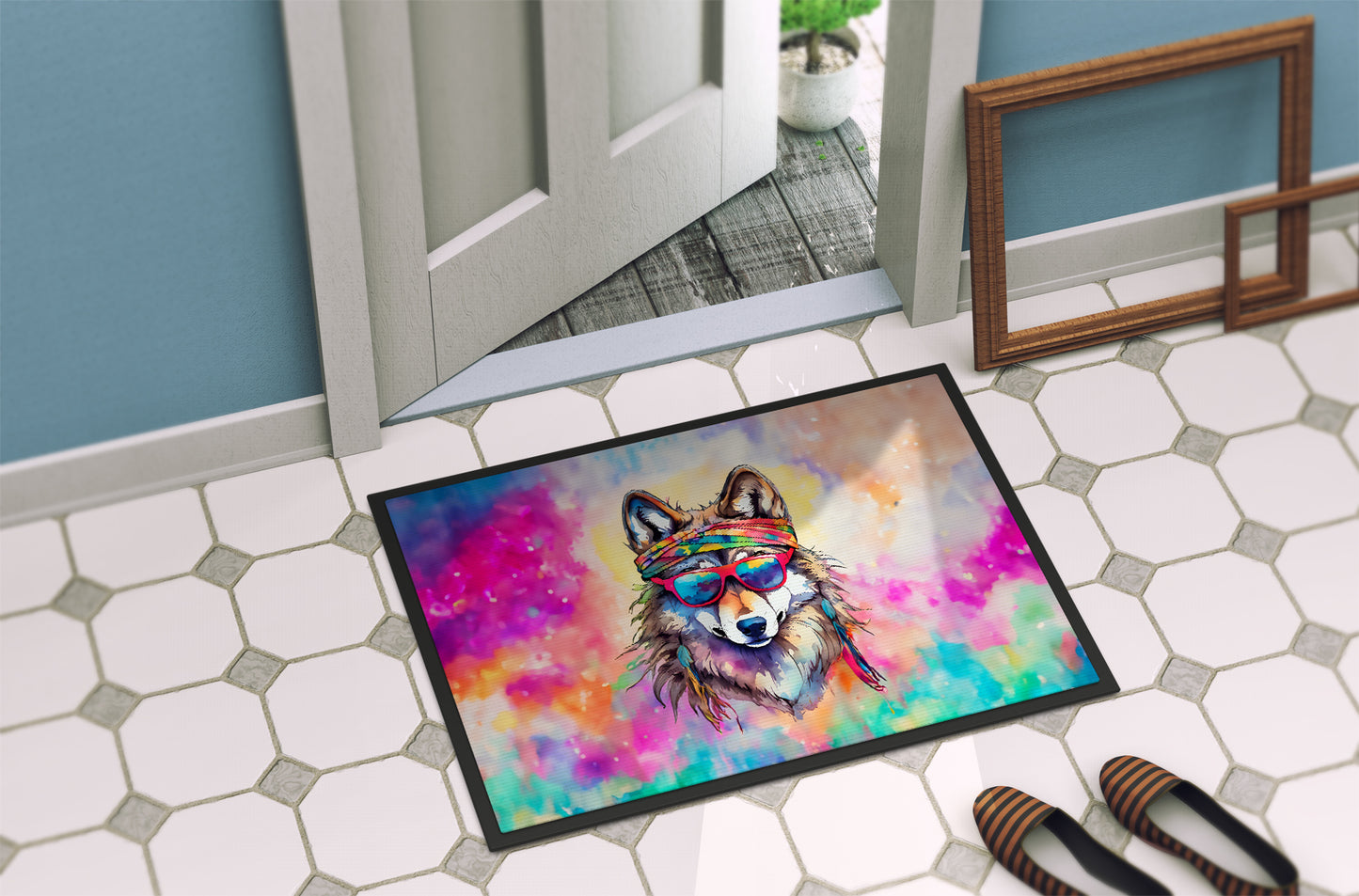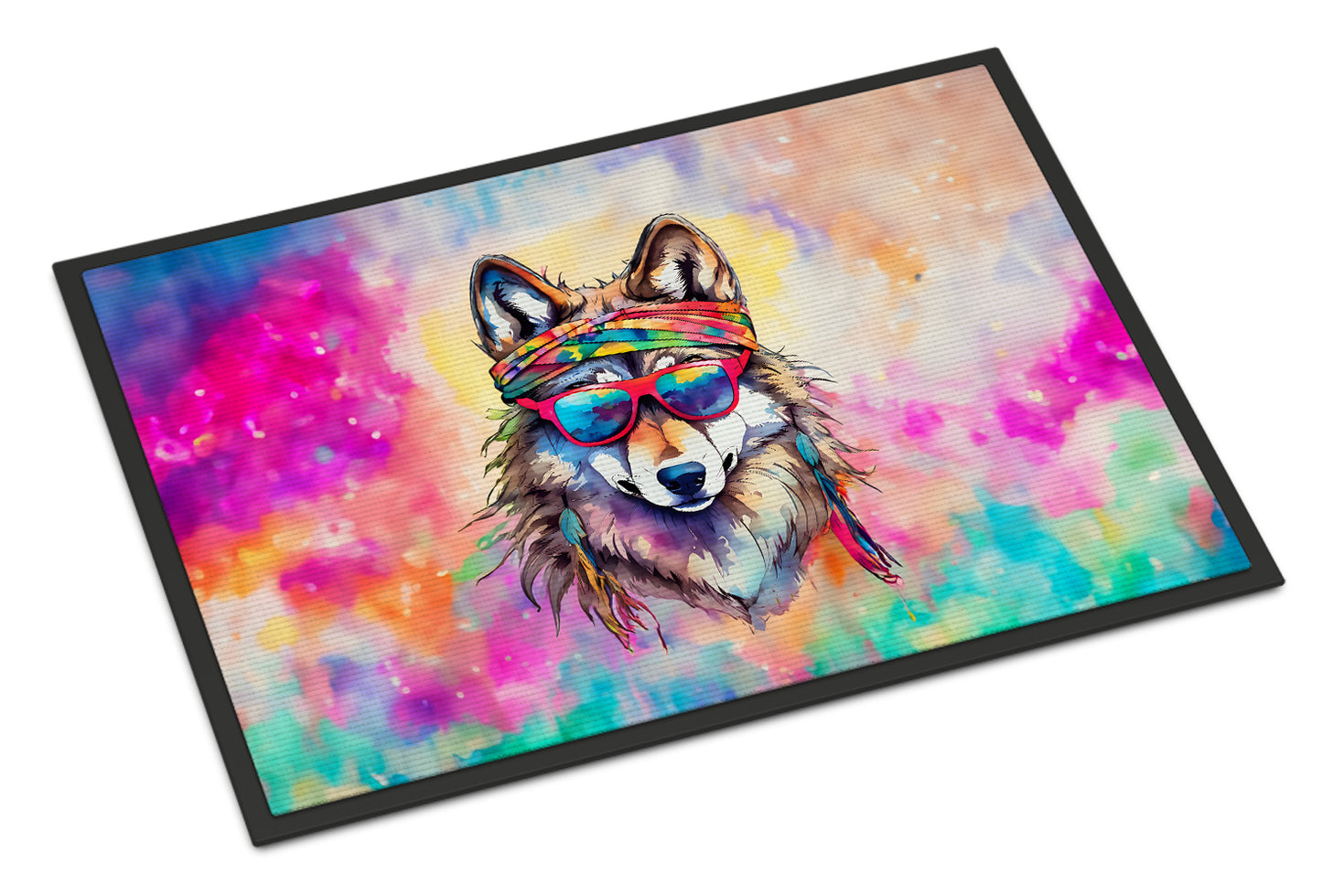 Doormat featuring breed specific Wolf artwork. Welcome your guests in style with our Artwork Door Mat, designed to withstand almost any weather condition. This mat, measuring approximately 24 by 36 inches, is held together by durable black binding tape. Its top layer, composed of polyester felt, is dyed with the eye-catching image you see on the mat. A few layers below provide the mat with stability, while its rubber bottom is stamped to help prevent slipping and ensures safety. Our mat works wonderfully as both an indoor or outdoor door mat. For cleaning, simply hose it off with water or use a power washer - no need for any cleaner that produces suds. Avoid scrubbing with a brush, instead, opt for the vacuum on floor setting. Designed manufactured and printed in the USA, this mat is a perfect addition to your porch, outdoor kitchen, entryway, or any indoor space. Its unique design makes it a charming decorative rug that greets your guests and adds a stylish touch to your home decor.