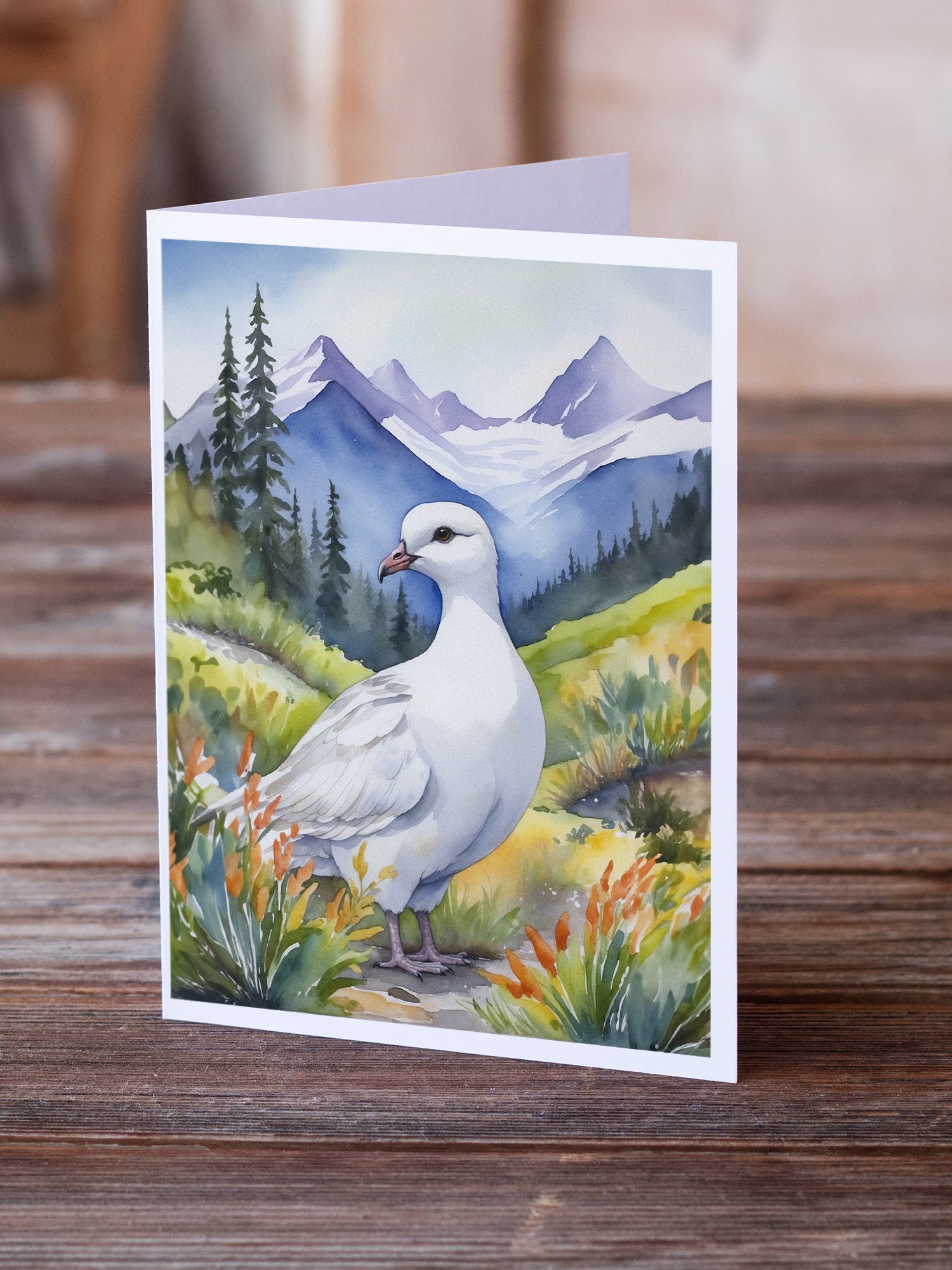 Greeting Cards Pack of 8 featuring breed specific Willow Ptarmigan artwork. Celebrate special moments with Caroline's Treasures Printed Greeting Card Pack. This pack includes eight beautifully folded 5x7 cards, accompanied by eight matching white envelopes. With blank interiors, these cards provide ample space for your personalized messages and heartfelt holiday greetings. Each card features captivating full-color artwork, meticulously printed in our facility on high-quality 80 lb cover stock or 216 GSM. The super smooth finish of the white cards enhances the visual impact of the artwork, creating a truly stunning presentation. Designed by our talented in-house artists or licensed artists, the artwork on these cards showcases their creativity and attention to detail. From vibrant illustrations to captivating designs, each card tells its own unique story. Whether it's for birthdays, anniversaries, holidays, or any special occasion, Caroline's Treasures Greeting Card Pack is the perfect way to convey your heartfelt sentiments. Share joy, love, and warm wishes with these exquisite cards and make every moment unforgettable.