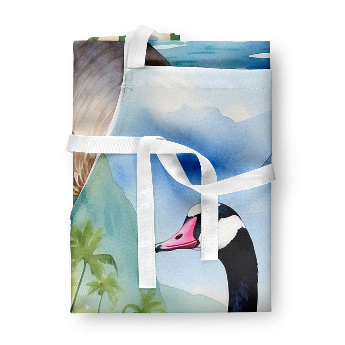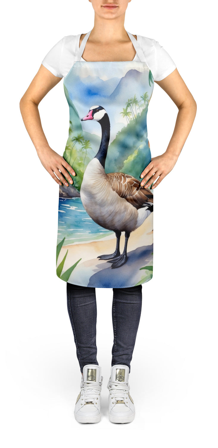 Apron featuring breed specific Hawaiian Goose artwork. Elevate your cooking, baking, and grilling experiences with our versatile Kitchen or BBQ Apron. This Bib Style apron isn't just limited to culinary activities - it also serves as an excellent baking apron, artist apron, server apron, gardening apron, or even a dog grooming apron. The apron showcases vibrant full-color artwork contributed by one of our talented artists, bringing a dash of style to your daily tasks. With dimensions of approximately 27"W x 30"H, it provides ample coverage to protect your clothing from spills and splashes. Our apron is meticulously crafted from 100% Ultra Spun Polyester, known for its durability and lightweight nature. The apron comes with white tie straps, ensuring a comfortable and adjustable fit for all. It's a perfect choice for kitchen apron enthusiasts, whether you are a woman or a man. Designed for easy maintenance, this apron is fully machine washable. The quick-drying polyester material actively reduces staining, keeping your apron looking fresh and new for longer. Our beautifully designed apron isn't just a functional kitchen accessory - it's a fashion statement in the culinary world!