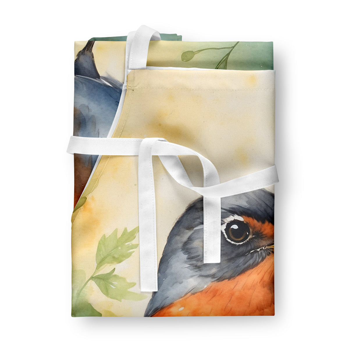 Apron featuring breed specific American Robin artwork. Elevate your cooking, baking, and grilling experiences with our versatile Kitchen or BBQ Apron. This Bib Style apron isn't just limited to culinary activities - it also serves as an excellent baking apron, artist apron, server apron, gardening apron, or even a dog grooming apron. The apron showcases vibrant full-color artwork contributed by one of our talented artists, bringing a dash of style to your daily tasks. With dimensions of approximately 27"W x 30"H, it provides ample coverage to protect your clothing from spills and splashes. Our apron is meticulously crafted from 100% Ultra Spun Polyester, known for its durability and lightweight nature. The apron comes with white tie straps, ensuring a comfortable and adjustable fit for all. It's a perfect choice for kitchen apron enthusiasts, whether you are a woman or a man. Designed for easy maintenance, this apron is fully machine washable. The quick-drying polyester material actively reduces staining, keeping your apron looking fresh and new for longer. Our beautifully designed apron isn't just a functional kitchen accessory - it's a fashion statement in the culinary world!