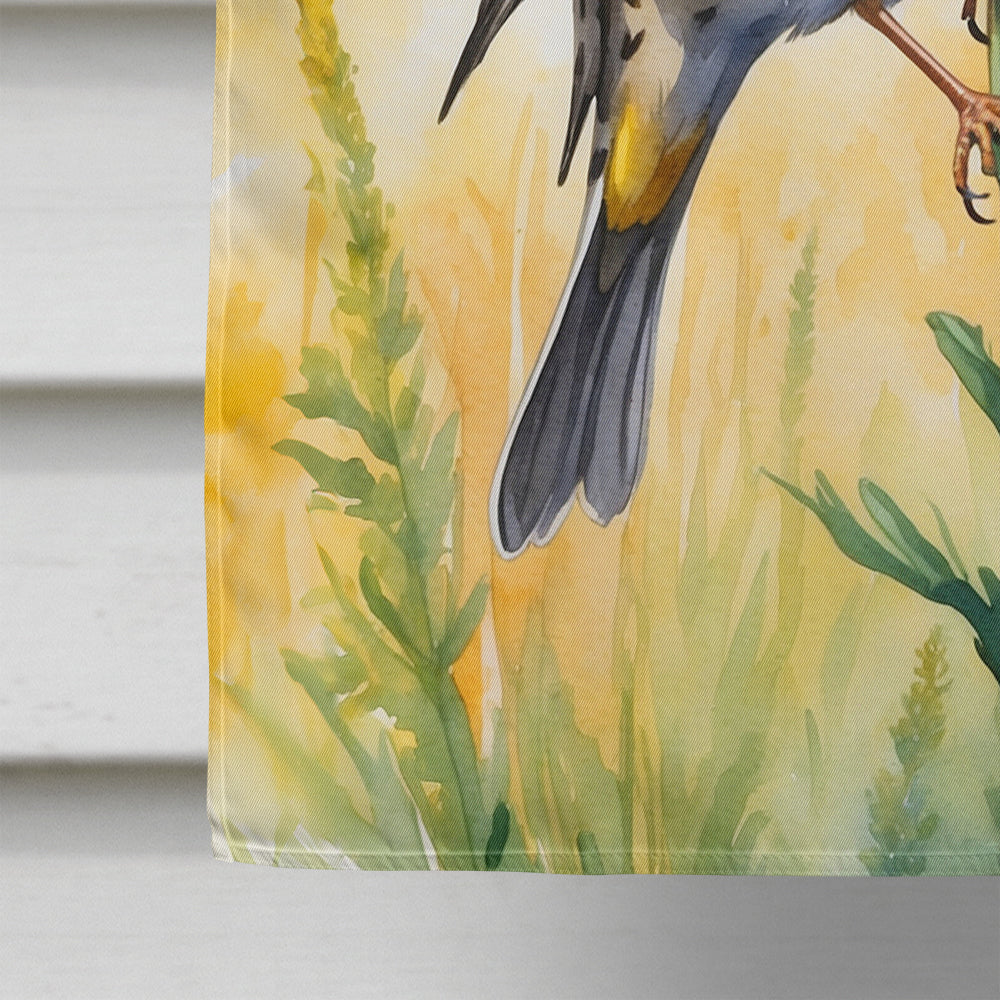 House Flag featuring breed specific Western Meadowlark artwork. Presenting our Heavy Duty Polyester House Size Decorative Sleeve Pole Flag, a vibrant addition to enhance the aesthetic appeal of your home. This large decorative flag, measuring approximately 28 x 40 inches, offers ample coverage and visibility. Each flag is meticulously sewn and made individually, ensuring a unique piece that may slightly vary in size. It's a sleeve pole flag, designed to fit a standard decorative flag pole effortlessly. Please note that the flag pole and bracket are not included and should be purchased separately. What sets our flag apart is its dual-sided print. The design is mirrored on both sides of the fabric, allowing for uniform visibility regardless of the angle. Printed in full color, our flag showcases vibrant hues that truly stand out. To ensure lasting vibrancy and durability, the dyes are heat-set into the fabric. This ensures your flag remains bright and captivating through various weather conditions. Elevate the look of your home with our Heavy Duty Polyester House Size Decorative Sleeve Pole Flag!