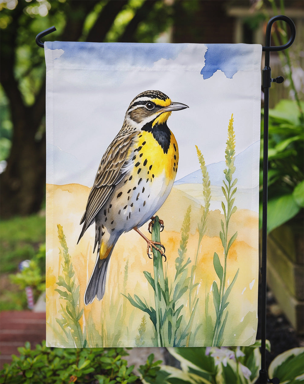 Garden Flag featuring breed specific Western Meadowlark artwork. Enhance the beauty of your garden, patio, or yard with Caroline's Treasures Decorative Garden Flag, proudly made in the USA. Crafted from two pieces of thick, double-sided polyester fabric, this 2-ply garden flag is designed to withstand various weather conditions, making it water-resistant and weatherproof. Featuring correctly readable words on both sides, this garden flag offers a delightful visual experience from any angle. With its heavier weight, it stands out among other garden flags, ensuring stability and durability even in wind, rain, and snow. Measuring approximately 11 1/4 inches by 15 1/2 inches, this flag allows you to personalize your outdoor decor. It comes with a 1 1/2-inch sleeve sewn in, allowing easy attachment to any standard garden flag stand or garden size porch hanger (sold separately). Make a statement in your outdoor space with Caroline's Treasures Decorative Garden Flag, a vibrant and high-quality flag that adds color and personality to your surroundings. Proudly made in the USA, it's a symbol of quality craftsmanship and attention to detail.