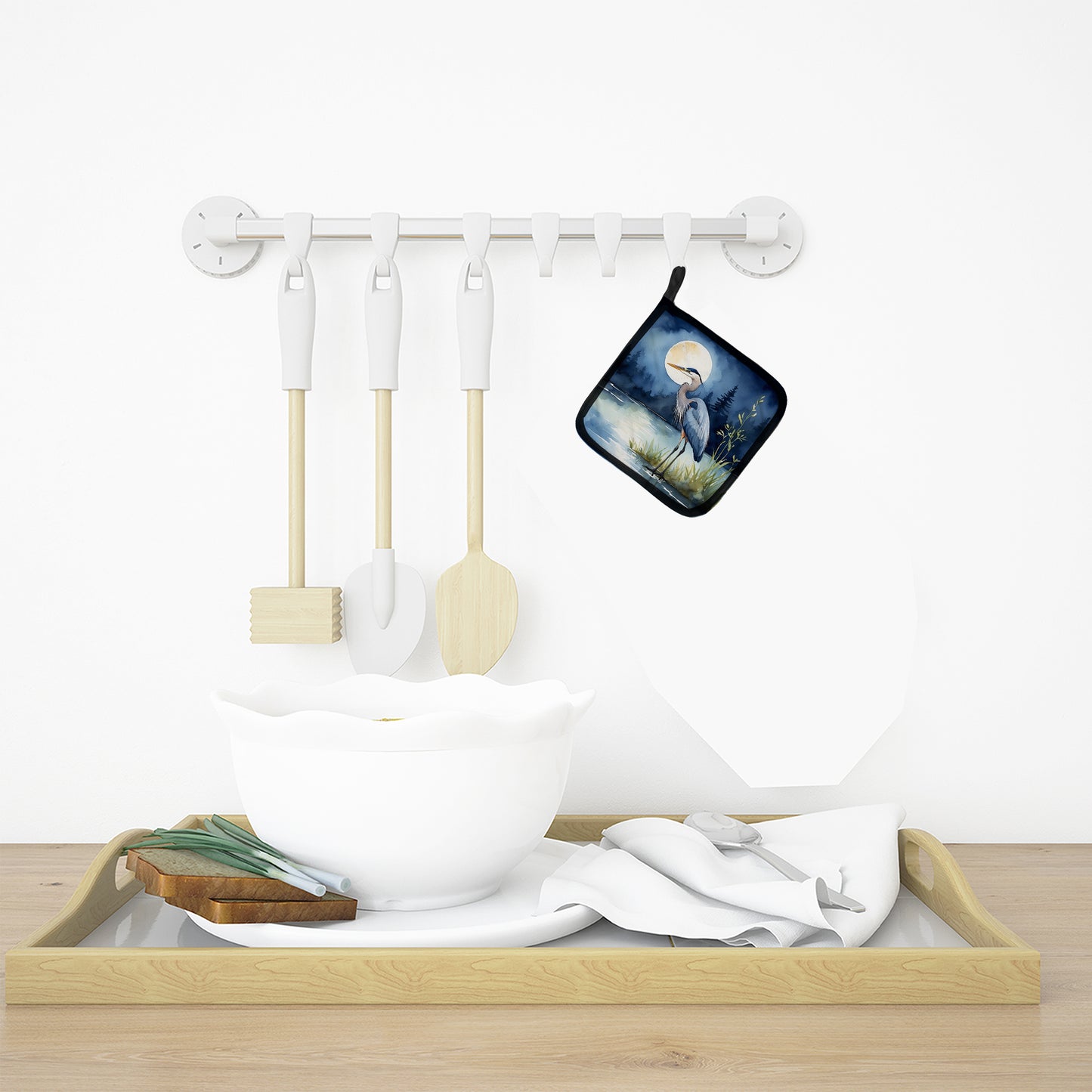 Blue Heron Under the Moonlight Pair of Pot Holders