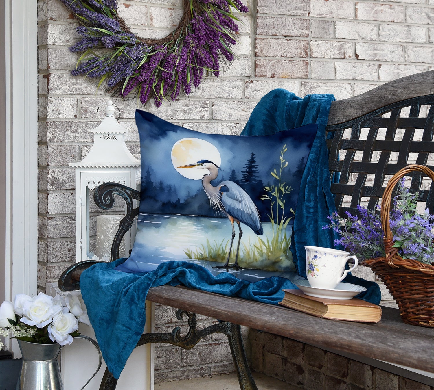 Throw Pillow featuring breed specific Blue Heron artwork. Revitalize your outdoor or indoor living space with Caroline's Treasures 18x18 Fabric Decorative Pillow. With a generously sized dimension of approximately 18 inches by 18 inches, this pillow makes a comfortable and aesthetic addition to any seating area. Made from a unique, water-resistant material developed by Caroline's Treasures, the pillow sham is 100% polyester fabric that's durable and ready to weather any condition. Its vibrant, full-color artwork will not fade over time as it is dyed with color-fast dyes. Whether you place it on your patio furniture, porch, veranda, or indoor couch, its soft canvas fabric ensures a cozy experience. The pillow is handcrafted in the United States, featuring a sham created from three pieces of fabric and a polyester insert for enduring shape and overstuffed comfort. Despite being robustly built to endure the outdoors, it is as soft and snug as your favorite indoor cushions. Please note, as all our pillows are handmade, sizes may vary slightly, adding to the charm of this unique decorative item.