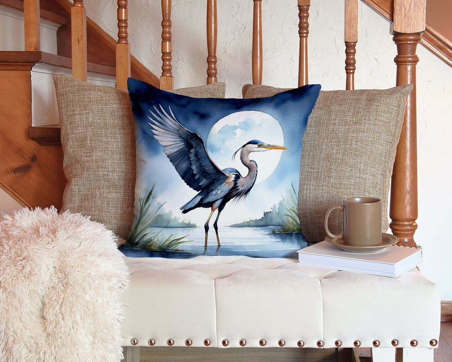 Throw Pillow featuring breed specific Blue Heron artwork. Add a touch of vibrancy and comfort to your outdoor seating with Caroline's Treasures Fabric Decorative Pillow. Measuring approximately 14 inches by 14 inches, this outdoor pillow is crafted to elevate the appeal of your patio furniture, infusing it with vivid color and artistic flair. The pillow includes a 100% Polyester Fabric sham filled with a quality pillow form to provide superior comfort. Innovatively made from our brand new material, specifically woven for its water resistance, this pillow is designed for durability. The soft canvas fabric offers versatility in use, fit for your indoor couch or your outdoor patio, porch, or veranda. The fabric is dyed with colorfast dyes built for resilience against weather conditions, ensuring the pillow retains its beauty over time. Constructed by sewing three fabric pieces to create a sham, the polyester insert is then nestled inside to form the pillow, resulting in an overstuffed pillow that maintains its shape. Both the sham and the pillow insert are proudly made in the United States. As the pillows are handcrafted, there may be minor variations in size, further enhancing their unique charm. Experience comfort in style with Caroline's Treasures Fabric Decorative Pillow.