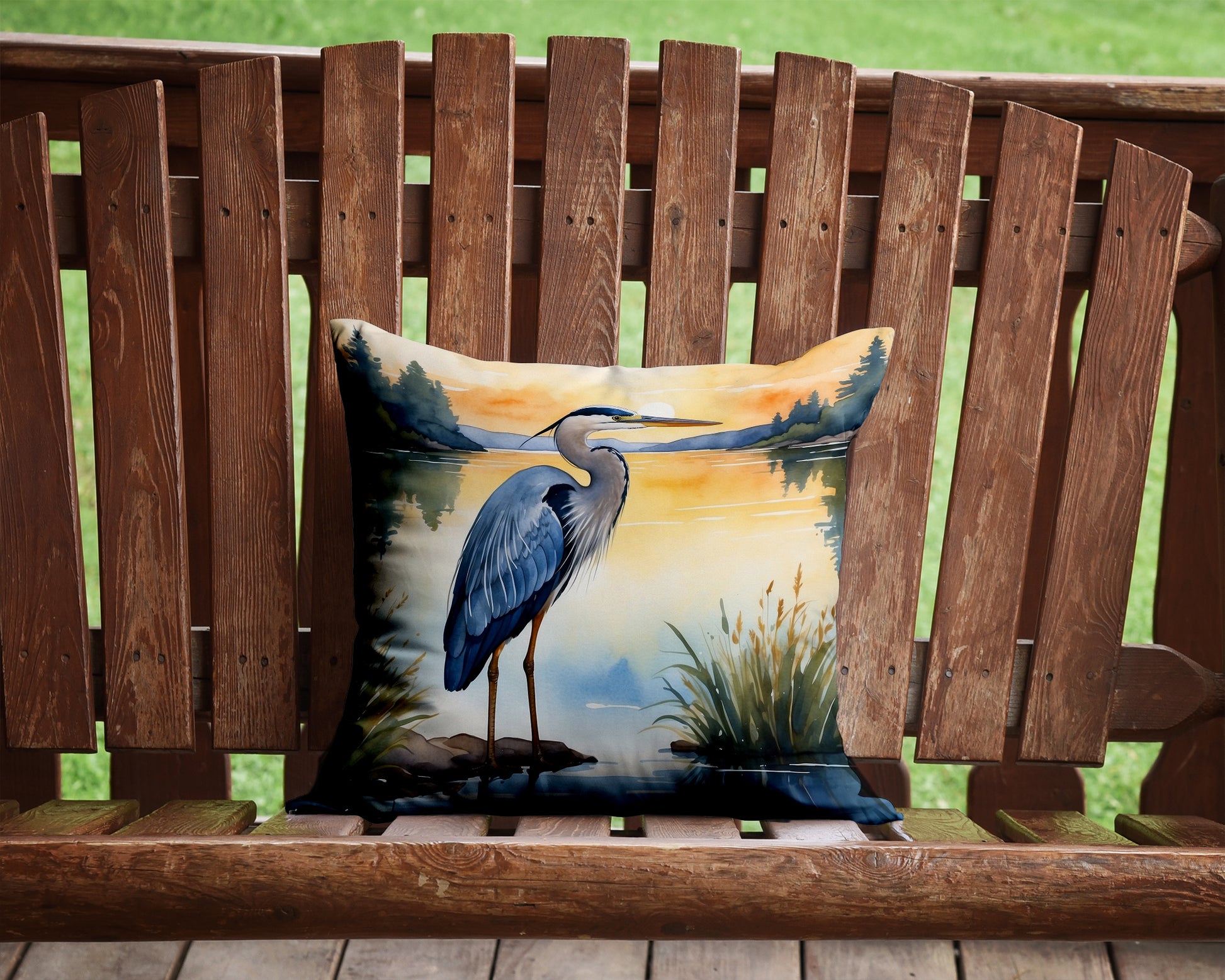 Throw Pillow featuring breed specific Blue Heron artwork. Add a touch of vibrancy and comfort to your outdoor seating with Caroline's Treasures Fabric Decorative Pillow. Measuring approximately 14 inches by 14 inches, this outdoor pillow is crafted to elevate the appeal of your patio furniture, infusing it with vivid color and artistic flair. The pillow includes a 100% Polyester Fabric sham filled with a quality pillow form to provide superior comfort. Innovatively made from our brand new material, specifically woven for its water resistance, this pillow is designed for durability. The soft canvas fabric offers versatility in use, fit for your indoor couch or your outdoor patio, porch, or veranda. The fabric is dyed with colorfast dyes built for resilience against weather conditions, ensuring the pillow retains its beauty over time. Constructed by sewing three fabric pieces to create a sham, the polyester insert is then nestled inside to form the pillow, resulting in an overstuffed pillow that maintains its shape. Both the sham and the pillow insert are proudly made in the United States. As the pillows are handcrafted, there may be minor variations in size, further enhancing their unique charm. Experience comfort in style with Caroline's Treasures Fabric Decorative Pillow.