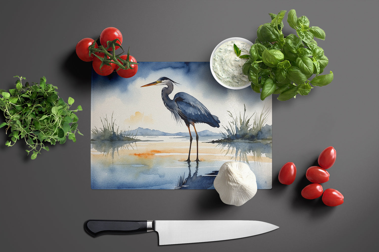Blue Heron Barely Lit Sky Glass Cutting Board