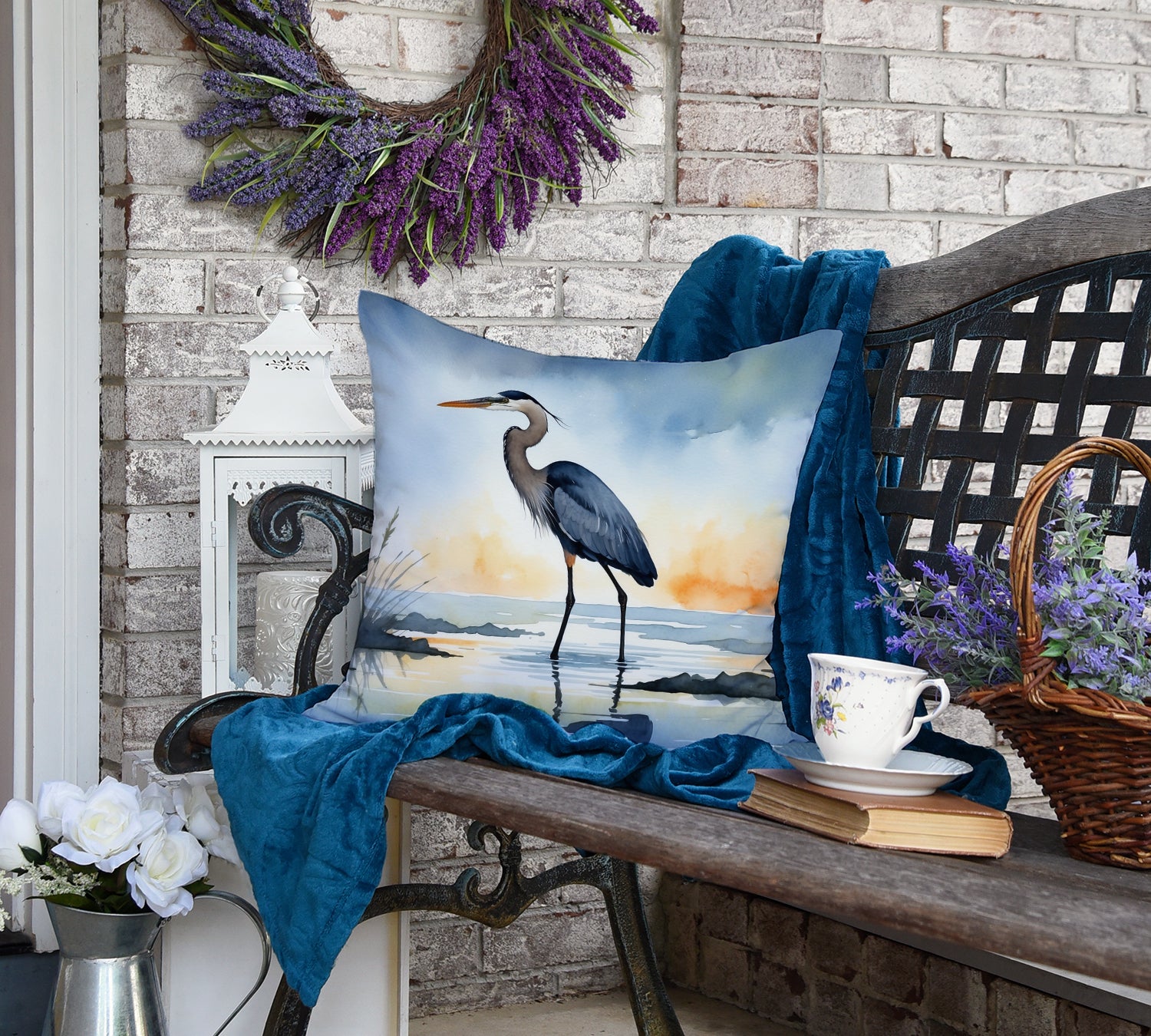 Throw Pillow featuring breed specific Blue Heron artwork. Revitalize your outdoor or indoor living space with Caroline's Treasures 18x18 Fabric Decorative Pillow. With a generously sized dimension of approximately 18 inches by 18 inches, this pillow makes a comfortable and aesthetic addition to any seating area. Made from a unique, water-resistant material developed by Caroline's Treasures, the pillow sham is 100% polyester fabric that's durable and ready to weather any condition. Its vibrant, full-color artwork will not fade over time as it is dyed with color-fast dyes. Whether you place it on your patio furniture, porch, veranda, or indoor couch, its soft canvas fabric ensures a cozy experience. The pillow is handcrafted in the United States, featuring a sham created from three pieces of fabric and a polyester insert for enduring shape and overstuffed comfort. Despite being robustly built to endure the outdoors, it is as soft and snug as your favorite indoor cushions. Please note, as all our pillows are handmade, sizes may vary slightly, adding to the charm of this unique decorative item.