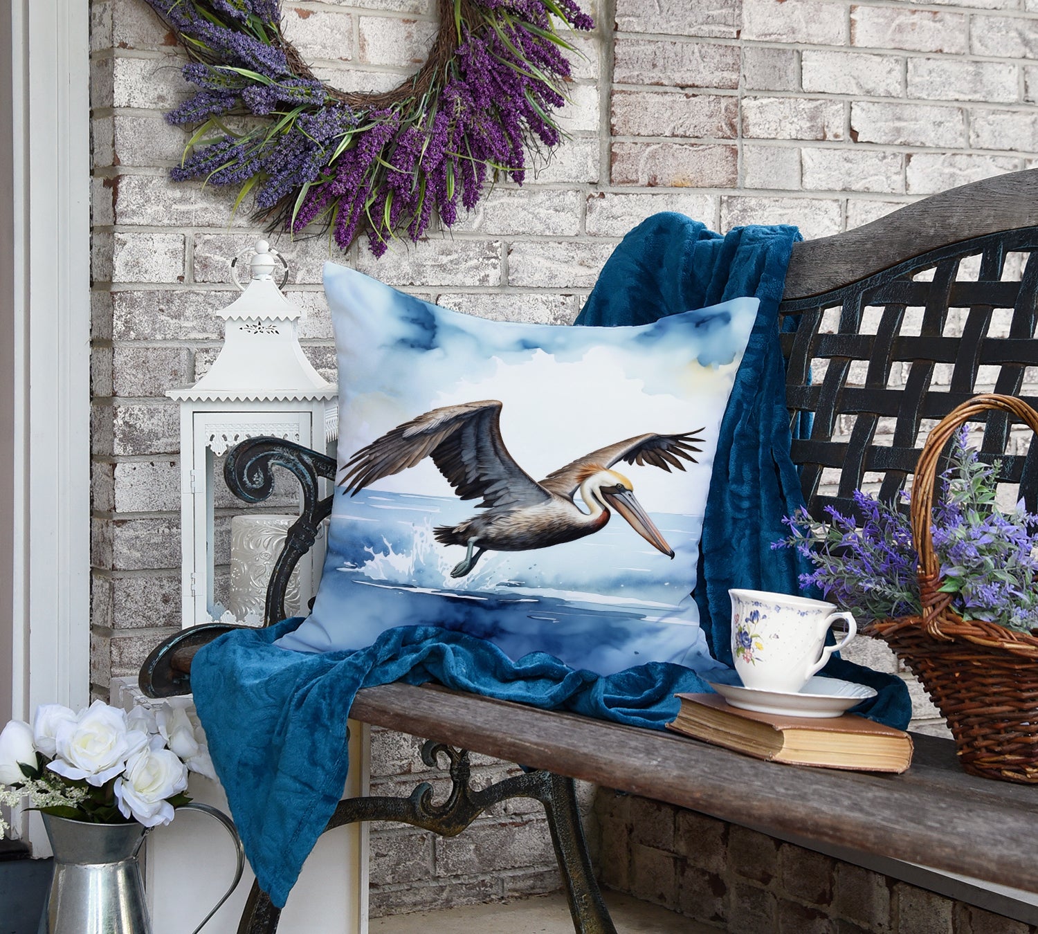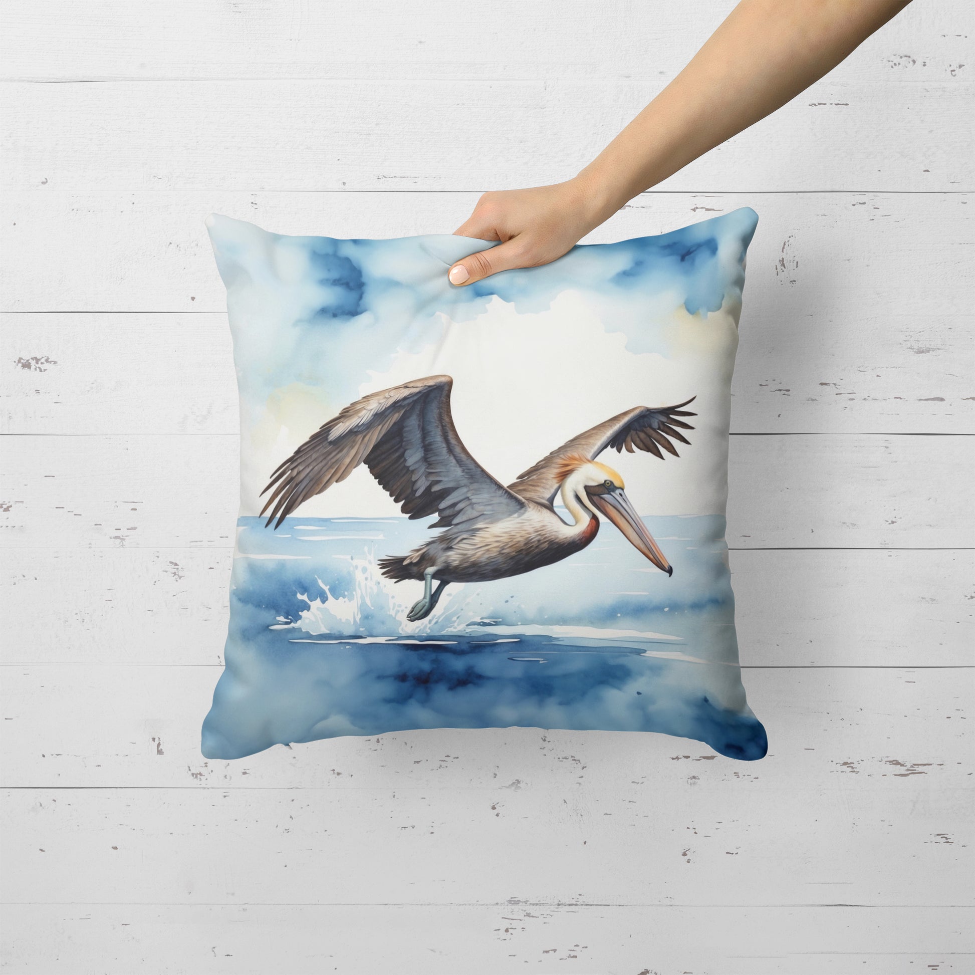 Throw Pillow featuring breed specific Pelican artwork. Revitalize your outdoor or indoor living space with Caroline's Treasures 18x18 Fabric Decorative Pillow. With a generously sized dimension of approximately 18 inches by 18 inches, this pillow makes a comfortable and aesthetic addition to any seating area. Made from a unique, water-resistant material developed by Caroline's Treasures, the pillow sham is 100% polyester fabric that's durable and ready to weather any condition. Its vibrant, full-color artwork will not fade over time as it is dyed with color-fast dyes. Whether you place it on your patio furniture, porch, veranda, or indoor couch, its soft canvas fabric ensures a cozy experience. The pillow is handcrafted in the United States, featuring a sham created from three pieces of fabric and a polyester insert for enduring shape and overstuffed comfort. Despite being robustly built to endure the outdoors, it is as soft and snug as your favorite indoor cushions. Please note, as all our pillows are handmade, sizes may vary slightly, adding to the charm of this unique decorative item.