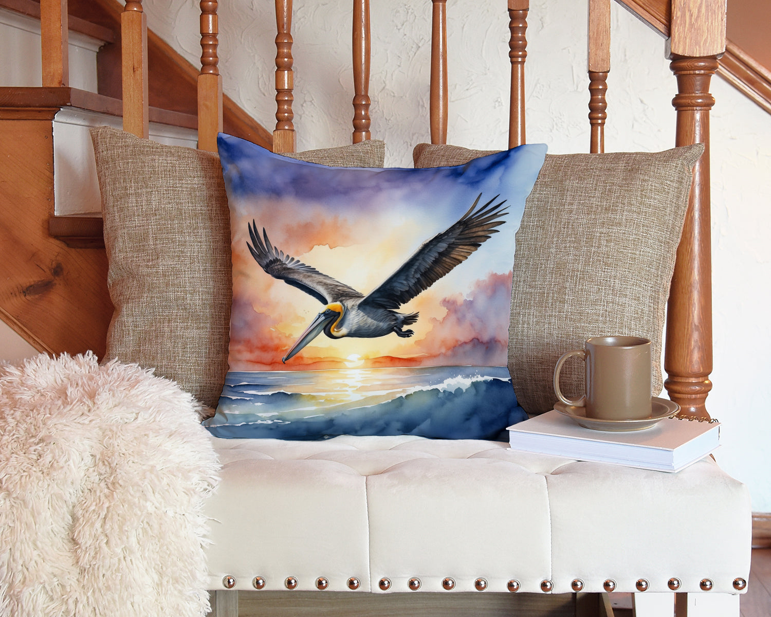 Throw Pillow featuring breed specific Pelican artwork. Add a touch of vibrancy and comfort to your outdoor seating with Caroline's Treasures Fabric Decorative Pillow. Measuring approximately 14 inches by 14 inches, this outdoor pillow is crafted to elevate the appeal of your patio furniture, infusing it with vivid color and artistic flair. The pillow includes a 100% Polyester Fabric sham filled with a quality pillow form to provide superior comfort. Innovatively made from our brand new material, specifically woven for its water resistance, this pillow is designed for durability. The soft canvas fabric offers versatility in use, fit for your indoor couch or your outdoor patio, porch, or veranda. The fabric is dyed with colorfast dyes built for resilience against weather conditions, ensuring the pillow retains its beauty over time. Constructed by sewing three fabric pieces to create a sham, the polyester insert is then nestled inside to form the pillow, resulting in an overstuffed pillow that maintains its shape. Both the sham and the pillow insert are proudly made in the United States. As the pillows are handcrafted, there may be minor variations in size, further enhancing their unique charm. Experience comfort in style with Caroline's Treasures Fabric Decorative Pillow.
