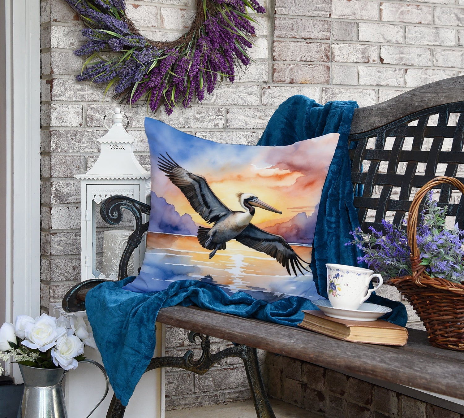 Throw Pillow featuring breed specific Pelican artwork. Revitalize your outdoor or indoor living space with Caroline's Treasures 18x18 Fabric Decorative Pillow. With a generously sized dimension of approximately 18 inches by 18 inches, this pillow makes a comfortable and aesthetic addition to any seating area. Made from a unique, water-resistant material developed by Caroline's Treasures, the pillow sham is 100% polyester fabric that's durable and ready to weather any condition. Its vibrant, full-color artwork will not fade over time as it is dyed with color-fast dyes. Whether you place it on your patio furniture, porch, veranda, or indoor couch, its soft canvas fabric ensures a cozy experience. The pillow is handcrafted in the United States, featuring a sham created from three pieces of fabric and a polyester insert for enduring shape and overstuffed comfort. Despite being robustly built to endure the outdoors, it is as soft and snug as your favorite indoor cushions. Please note, as all our pillows are handmade, sizes may vary slightly, adding to the charm of this unique decorative item.