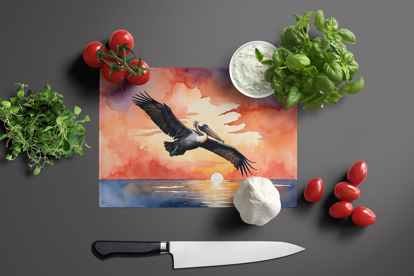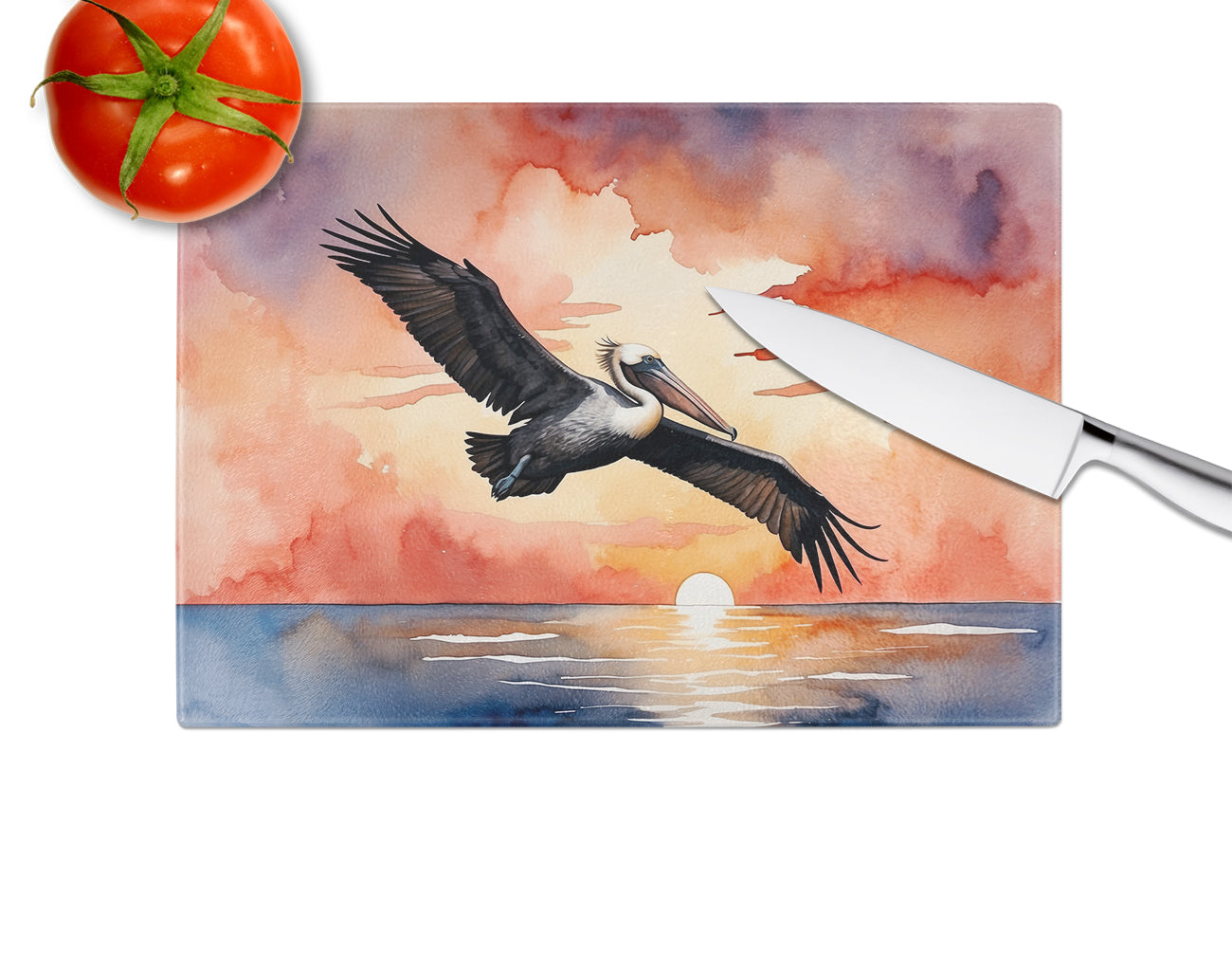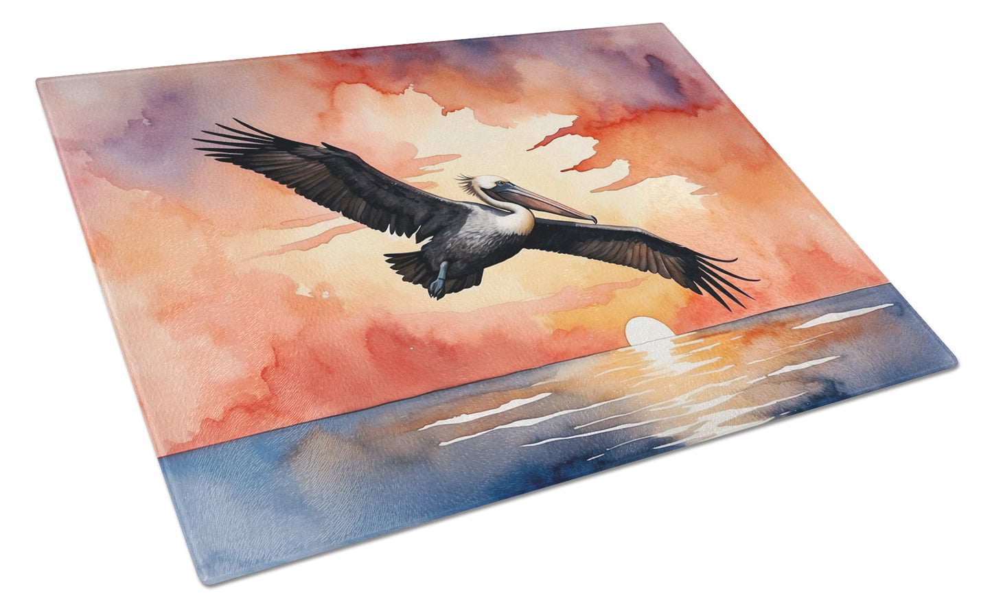 Glass Cutting Board featuring breed specific Pelican artwork. Introduce your kitchen to the vibrant, large Decorative Glass Cutting Board from Caroline's Treasures. Crafted from resilient tempered glass, this board is not only a utilitarian necessity but also a colorful art piece. With its generous dimensions of 15 inches in height and 12 inches in length, it offers ample space for all your cutting needs. Every piece showcases captivating artwork from distinguished artists, bringing an aesthetic edge to your kitchen. Beyond its attractive design, this cutting board ensures your countertop stays pristine and unscathed, owing to its heat-resistant properties. Engineered with user convenience in mind, it features non-skid feet for stability, and rounded corners for additional safety. Its robust construction renders it virtually unbreakable, guaranteeing longevity. The board comes with protective feet bumpers, maintaining its position during use. This product is recommended to be hand washed only. Proudly printed and assembled in the United States, this cutting board exemplifies superior craftsmanship. With Caroline's Treasures' Decorative Glass Cutting Board, you're investing in a blend of functionality and artistic flair.