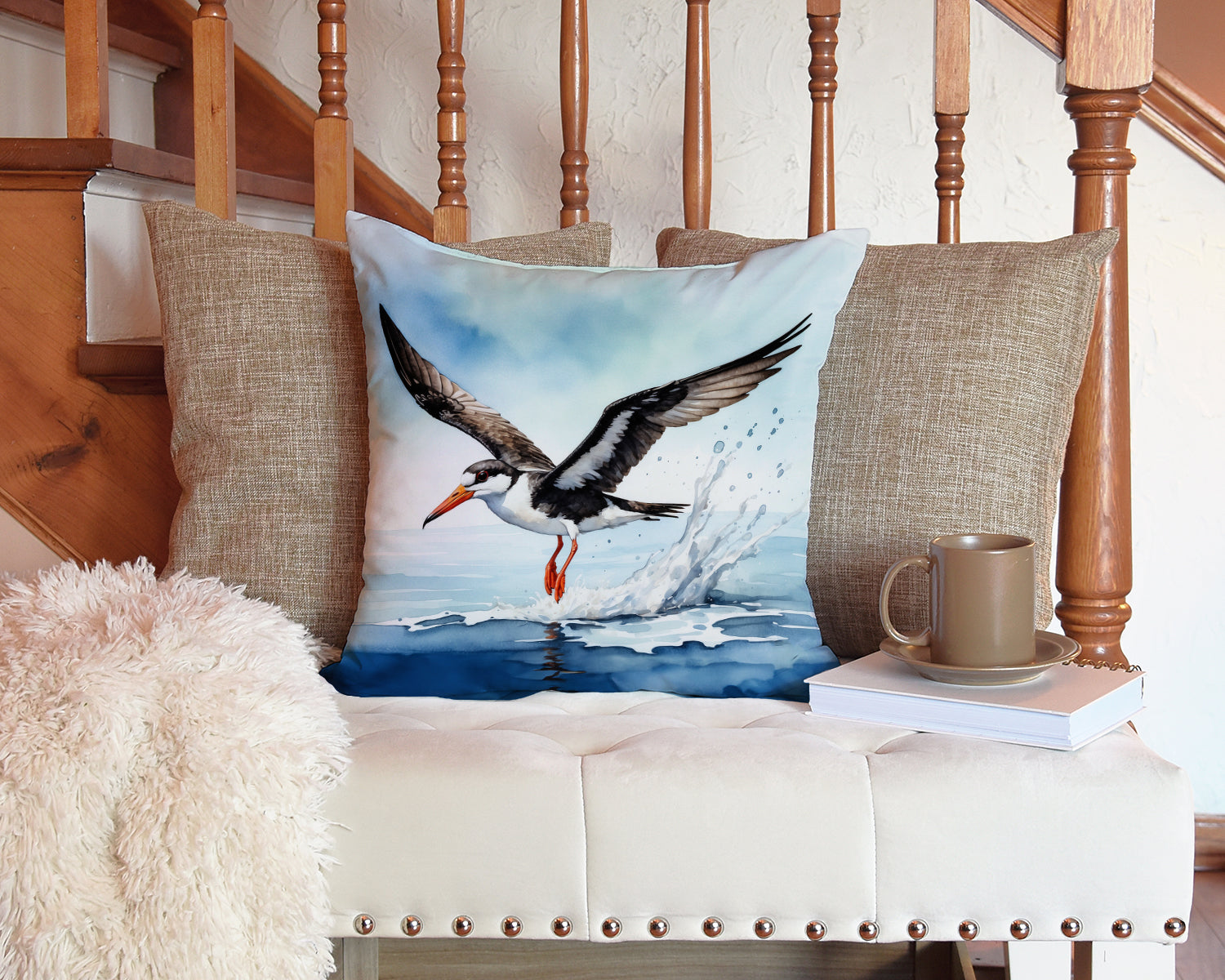 Throw Pillow featuring breed specific Black Skimmer artwork. Add a touch of vibrancy and comfort to your outdoor seating with Caroline's Treasures Fabric Decorative Pillow. Measuring approximately 14 inches by 14 inches, this outdoor pillow is crafted to elevate the appeal of your patio furniture, infusing it with vivid color and artistic flair. The pillow includes a 100% Polyester Fabric sham filled with a quality pillow form to provide superior comfort. Innovatively made from our brand new material, specifically woven for its water resistance, this pillow is designed for durability. The soft canvas fabric offers versatility in use, fit for your indoor couch or your outdoor patio, porch, or veranda. The fabric is dyed with colorfast dyes built for resilience against weather conditions, ensuring the pillow retains its beauty over time. Constructed by sewing three fabric pieces to create a sham, the polyester insert is then nestled inside to form the pillow, resulting in an overstuffed pillow that maintains its shape. Both the sham and the pillow insert are proudly made in the United States. As the pillows are handcrafted, there may be minor variations in size, further enhancing their unique charm. Experience comfort in style with Caroline's Treasures Fabric Decorative Pillow.