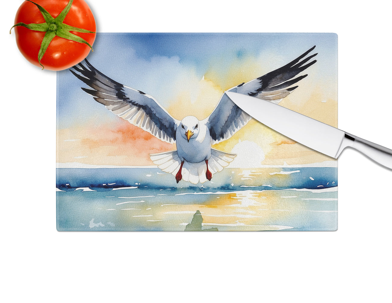 Glass Cutting Board featuring breed specific Gull artwork. Introduce your kitchen to the vibrant, large Decorative Glass Cutting Board from Caroline's Treasures. Crafted from resilient tempered glass, this board is not only a utilitarian necessity but also a colorful art piece. With its generous dimensions of 15 inches in height and 12 inches in length, it offers ample space for all your cutting needs. Every piece showcases captivating artwork from distinguished artists, bringing an aesthetic edge to your kitchen. Beyond its attractive design, this cutting board ensures your countertop stays pristine and unscathed, owing to its heat-resistant properties. Engineered with user convenience in mind, it features non-skid feet for stability, and rounded corners for additional safety. Its robust construction renders it virtually unbreakable, guaranteeing longevity. The board comes with protective feet bumpers, maintaining its position during use. This product is recommended to be hand washed only. Proudly printed and assembled in the United States, this cutting board exemplifies superior craftsmanship. With Caroline's Treasures' Decorative Glass Cutting Board, you're investing in a blend of functionality and artistic flair.