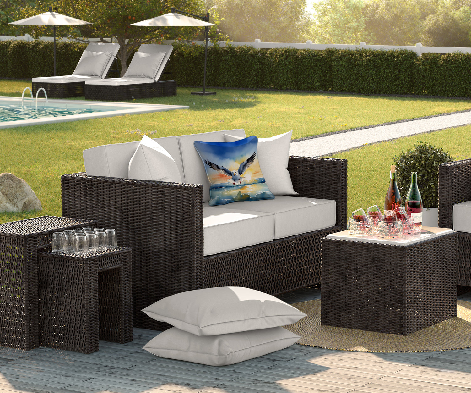 Throw Pillow featuring breed specific Gull artwork. Revitalize your outdoor or indoor living space with Caroline's Treasures 18x18 Fabric Decorative Pillow. With a generously sized dimension of approximately 18 inches by 18 inches, this pillow makes a comfortable and aesthetic addition to any seating area. Made from a unique, water-resistant material developed by Caroline's Treasures, the pillow sham is 100% polyester fabric that's durable and ready to weather any condition. Its vibrant, full-color artwork will not fade over time as it is dyed with color-fast dyes. Whether you place it on your patio furniture, porch, veranda, or indoor couch, its soft canvas fabric ensures a cozy experience. The pillow is handcrafted in the United States, featuring a sham created from three pieces of fabric and a polyester insert for enduring shape and overstuffed comfort. Despite being robustly built to endure the outdoors, it is as soft and snug as your favorite indoor cushions. Please note, as all our pillows are handmade, sizes may vary slightly, adding to the charm of this unique decorative item.