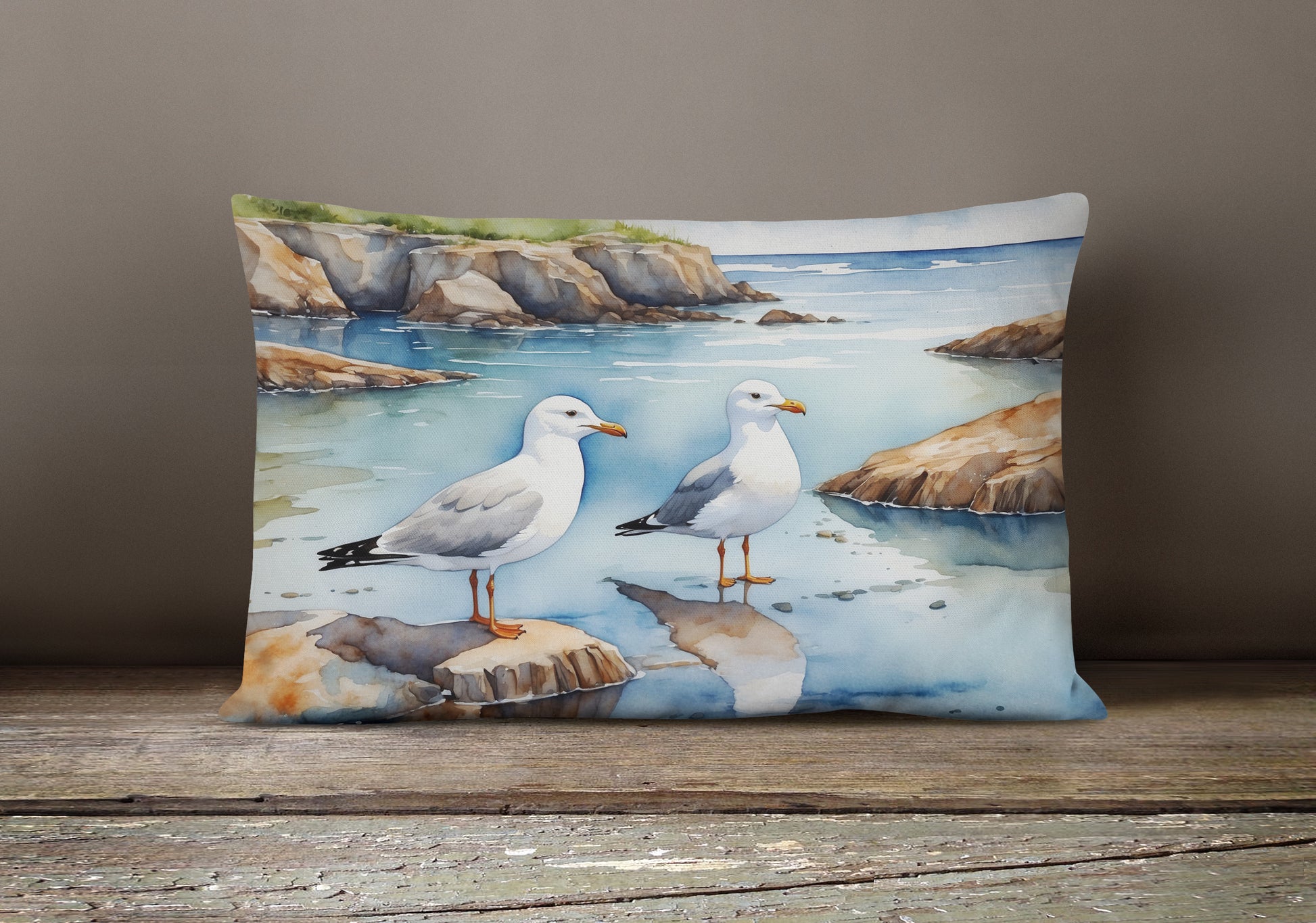 Throw Pillow featuring breed specific Gull artwork. Embrace the fusion of comfort and style with Caroline's Treasures Fabric Decorative Pillow. This 12x16 inch outdoor pillow is designed to complement your patio furniture, adding a splash of color and artistry to your outdoor setting. Constructed with a 100% Polyester Fabric pillow sham filled with a plush pillow form, this cushion is as comfortable as it is durable. Our outdoor pillow utilizes a novel fabric, meticulously woven for enhanced water resistance. This soft canvas material is equally suited for your indoor couch as well as outdoor settings such as the patio, porch, or veranda. To ensure enduring vibrance, we employ colorfast dyes resistant to fading even when subjected to weather elements. The making of this pillow involves the delicate sewing together of three fabric pieces to create a sham, into which a polyester insert is carefully placed. The result is an overstuffed pillow that tenaciously holds its shape. With both the sham and the pillow insert crafted in the United States, these handmade pillows are a testament to superior local craftsmanship. Note that as these pillows are handmade, sizes may slightly vary, enhancing their unique appeal. Enjoy comfort in style with Caroline's Treasures Fabric Decorative Pillow.