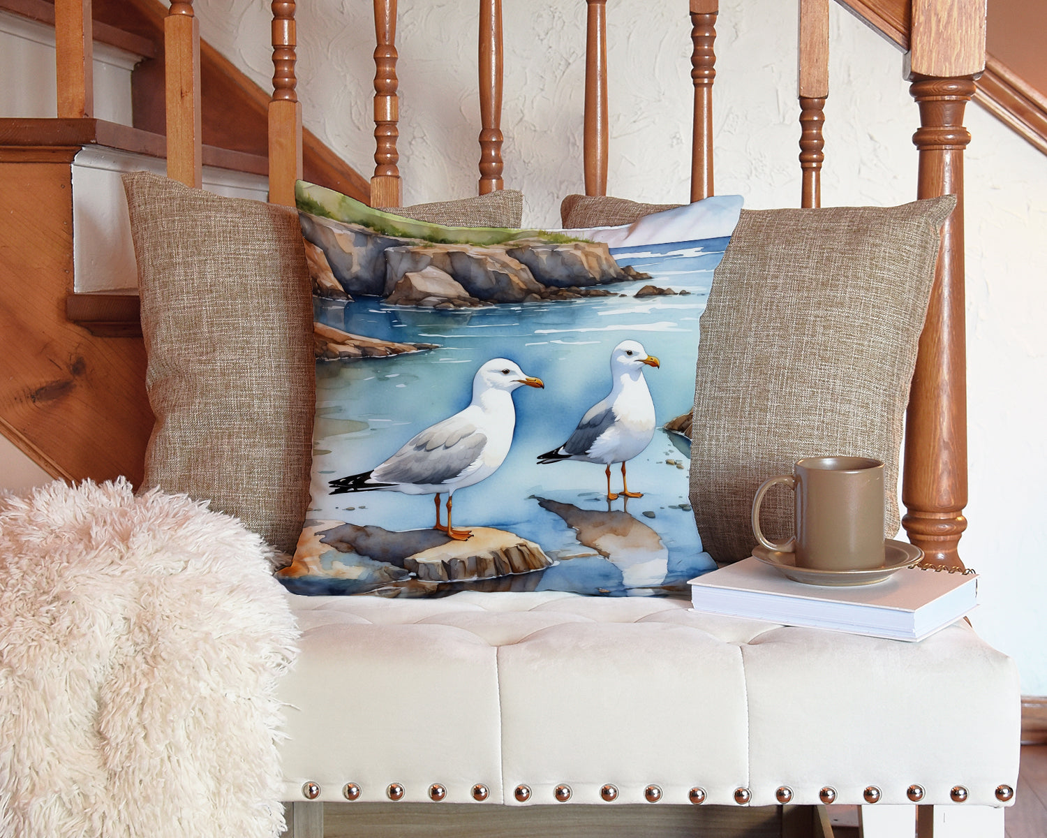 Throw Pillow featuring breed specific Gull artwork. Add a touch of vibrancy and comfort to your outdoor seating with Caroline's Treasures Fabric Decorative Pillow. Measuring approximately 14 inches by 14 inches, this outdoor pillow is crafted to elevate the appeal of your patio furniture, infusing it with vivid color and artistic flair. The pillow includes a 100% Polyester Fabric sham filled with a quality pillow form to provide superior comfort. Innovatively made from our brand new material, specifically woven for its water resistance, this pillow is designed for durability. The soft canvas fabric offers versatility in use, fit for your indoor couch or your outdoor patio, porch, or veranda. The fabric is dyed with colorfast dyes built for resilience against weather conditions, ensuring the pillow retains its beauty over time. Constructed by sewing three fabric pieces to create a sham, the polyester insert is then nestled inside to form the pillow, resulting in an overstuffed pillow that maintains its shape. Both the sham and the pillow insert are proudly made in the United States. As the pillows are handcrafted, there may be minor variations in size, further enhancing their unique charm. Experience comfort in style with Caroline's Treasures Fabric Decorative Pillow.