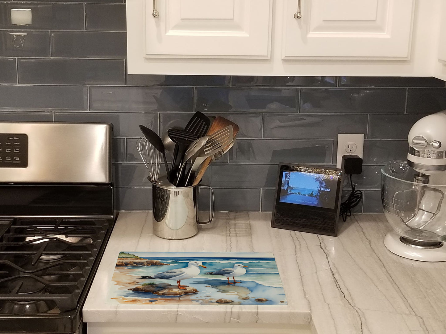 Glass Cutting Board featuring breed specific Gull artwork. Introduce your kitchen to the vibrant, large Decorative Glass Cutting Board from Caroline's Treasures. Crafted from resilient tempered glass, this board is not only a utilitarian necessity but also a colorful art piece. With its generous dimensions of 15 inches in height and 12 inches in length, it offers ample space for all your cutting needs. Every piece showcases captivating artwork from distinguished artists, bringing an aesthetic edge to your kitchen. Beyond its attractive design, this cutting board ensures your countertop stays pristine and unscathed, owing to its heat-resistant properties. Engineered with user convenience in mind, it features non-skid feet for stability, and rounded corners for additional safety. Its robust construction renders it virtually unbreakable, guaranteeing longevity. The board comes with protective feet bumpers, maintaining its position during use. This product is recommended to be hand washed only. Proudly printed and assembled in the United States, this cutting board exemplifies superior craftsmanship. With Caroline's Treasures' Decorative Glass Cutting Board, you're investing in a blend of functionality and artistic flair.