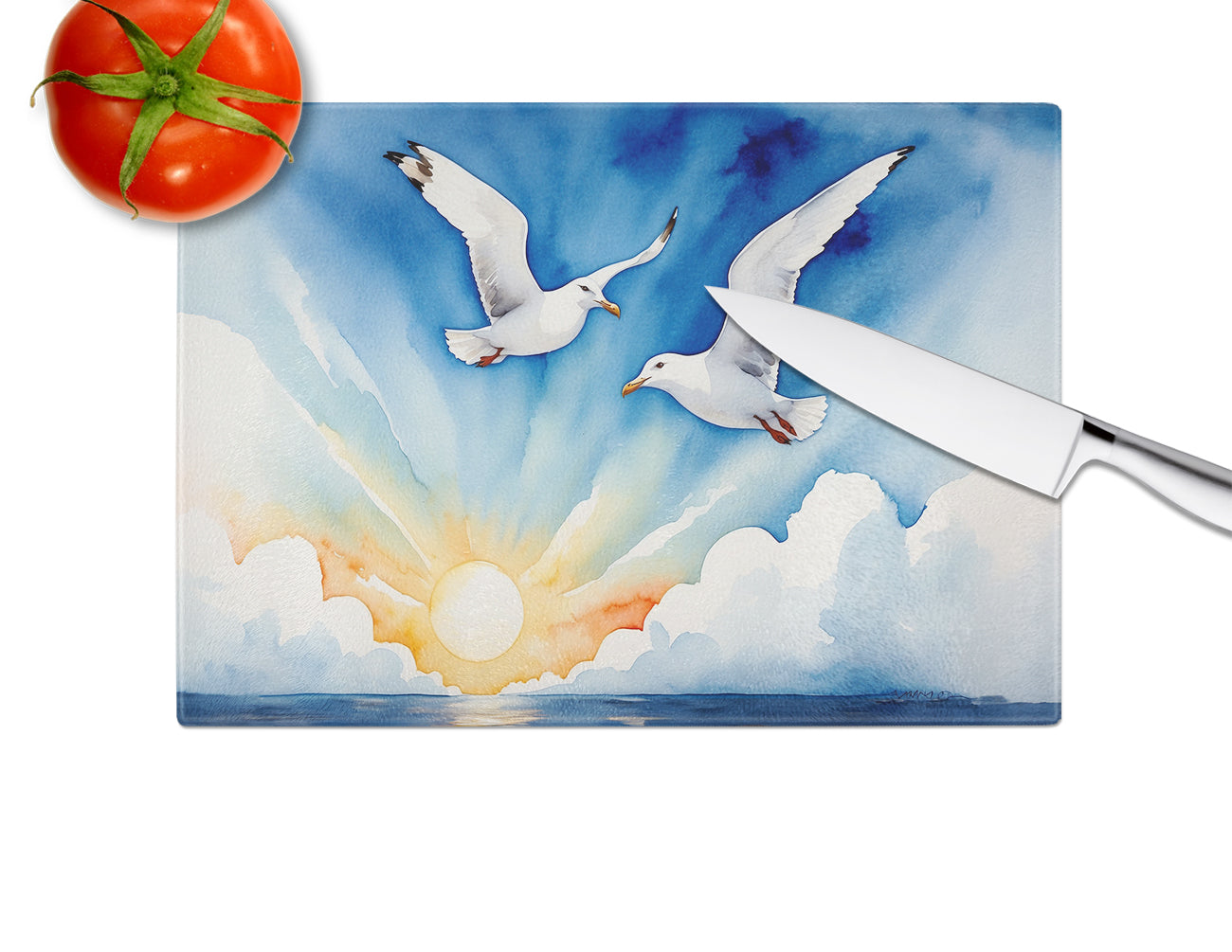 Glass Cutting Board featuring breed specific Gull artwork. Introduce your kitchen to the vibrant, large Decorative Glass Cutting Board from Caroline's Treasures. Crafted from resilient tempered glass, this board is not only a utilitarian necessity but also a colorful art piece. With its generous dimensions of 15 inches in height and 12 inches in length, it offers ample space for all your cutting needs. Every piece showcases captivating artwork from distinguished artists, bringing an aesthetic edge to your kitchen. Beyond its attractive design, this cutting board ensures your countertop stays pristine and unscathed, owing to its heat-resistant properties. Engineered with user convenience in mind, it features non-skid feet for stability, and rounded corners for additional safety. Its robust construction renders it virtually unbreakable, guaranteeing longevity. The board comes with protective feet bumpers, maintaining its position during use. This product is recommended to be hand washed only. Proudly printed and assembled in the United States, this cutting board exemplifies superior craftsmanship. With Caroline's Treasures' Decorative Glass Cutting Board, you're investing in a blend of functionality and artistic flair.