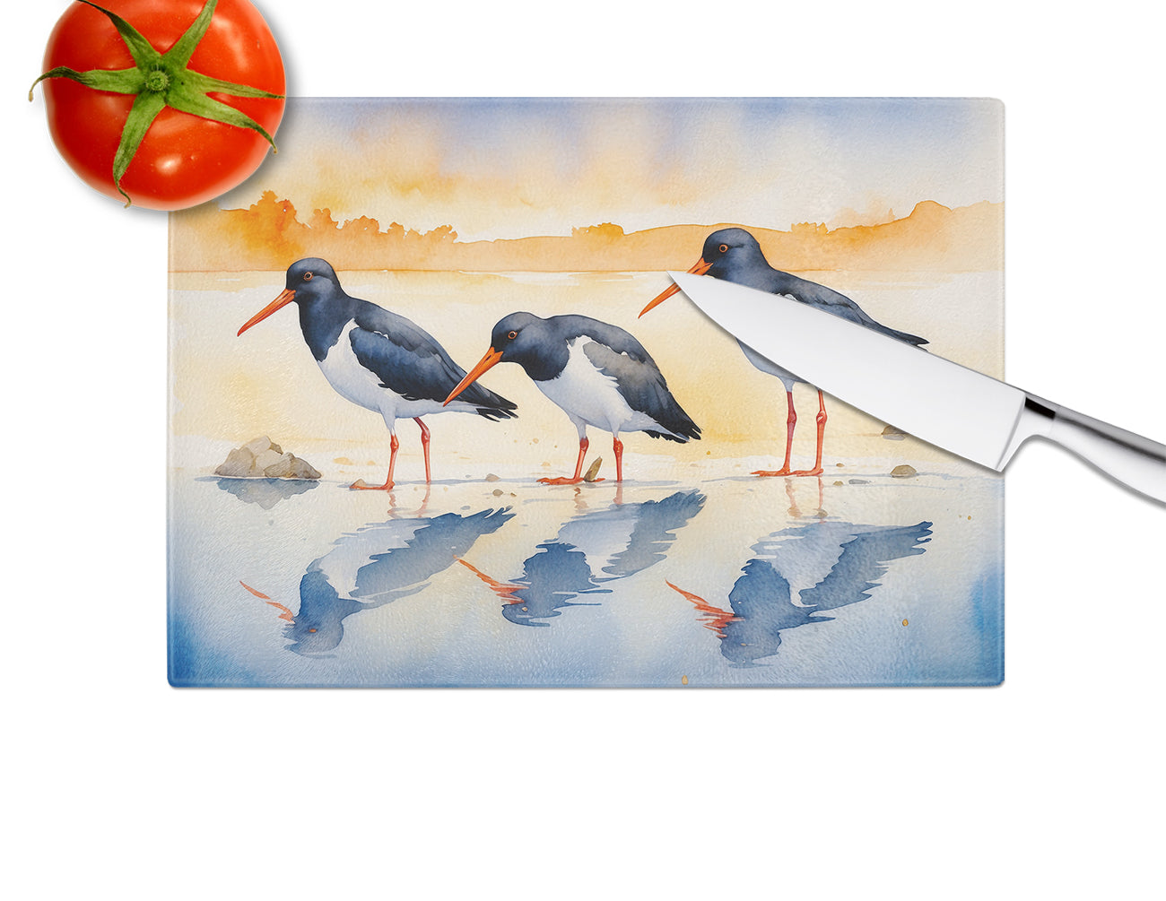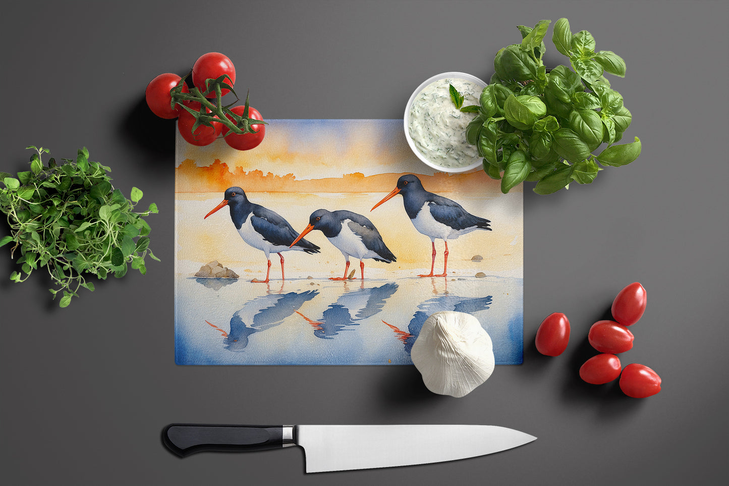 Glass Cutting Board featuring breed specific Oystercatchers artwork. Introduce your kitchen to the vibrant, large Decorative Glass Cutting Board from Caroline's Treasures. Crafted from resilient tempered glass, this board is not only a utilitarian necessity but also a colorful art piece. With its generous dimensions of 15 inches in height and 12 inches in length, it offers ample space for all your cutting needs. Every piece showcases captivating artwork from distinguished artists, bringing an aesthetic edge to your kitchen. Beyond its attractive design, this cutting board ensures your countertop stays pristine and unscathed, owing to its heat-resistant properties. Engineered with user convenience in mind, it features non-skid feet for stability, and rounded corners for additional safety. Its robust construction renders it virtually unbreakable, guaranteeing longevity. The board comes with protective feet bumpers, maintaining its position during use. This product is recommended to be hand washed only. Proudly printed and assembled in the United States, this cutting board exemplifies superior craftsmanship. With Caroline's Treasures' Decorative Glass Cutting Board, you're investing in a blend of functionality and artistic flair.