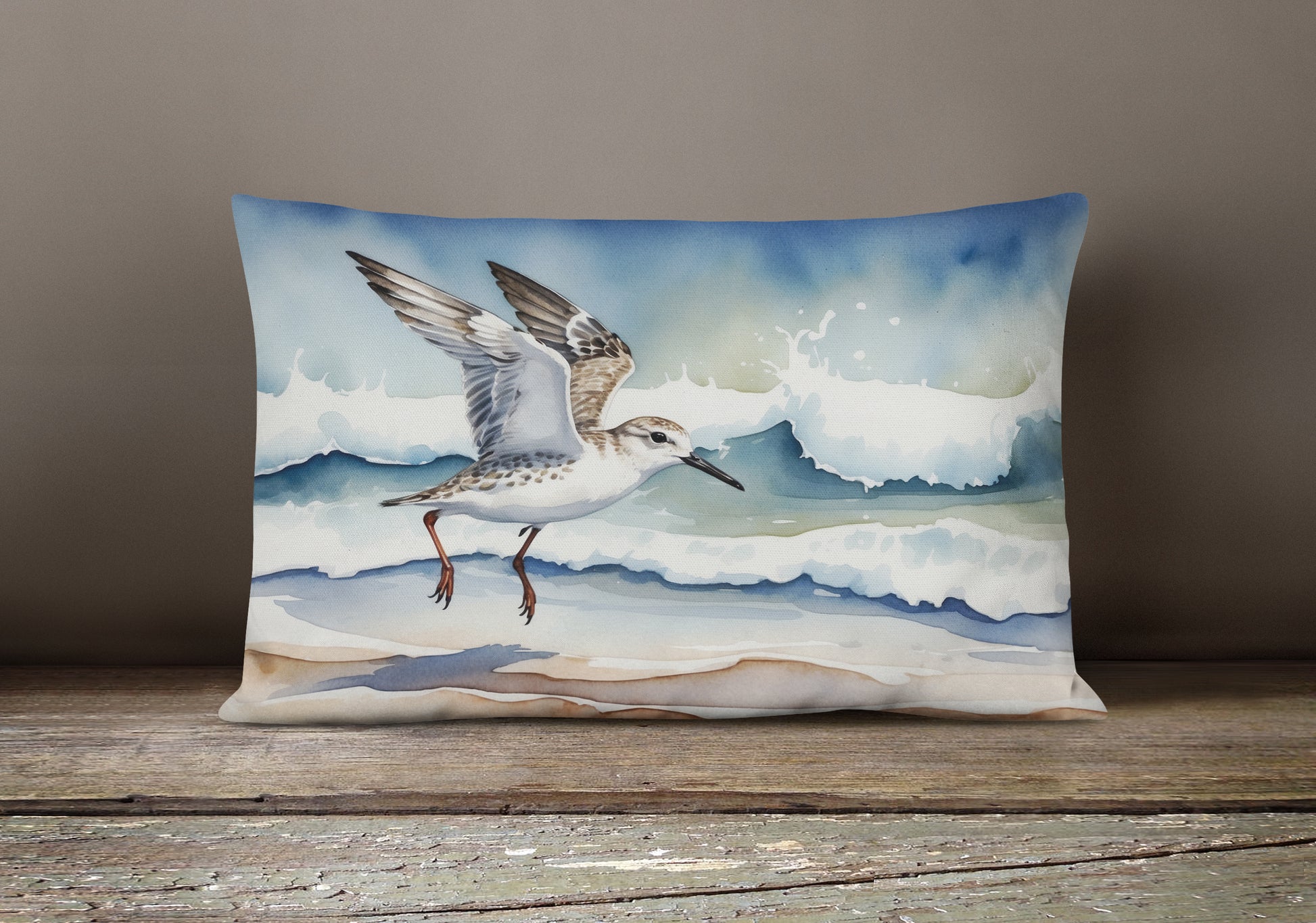Throw Pillow featuring breed specific Sanderling artwork. Embrace the fusion of comfort and style with Caroline's Treasures Fabric Decorative Pillow. This 12x16 inch outdoor pillow is designed to complement your patio furniture, adding a splash of color and artistry to your outdoor setting. Constructed with a 100% Polyester Fabric pillow sham filled with a plush pillow form, this cushion is as comfortable as it is durable. Our outdoor pillow utilizes a novel fabric, meticulously woven for enhanced water resistance. This soft canvas material is equally suited for your indoor couch as well as outdoor settings such as the patio, porch, or veranda. To ensure enduring vibrance, we employ colorfast dyes resistant to fading even when subjected to weather elements. The making of this pillow involves the delicate sewing together of three fabric pieces to create a sham, into which a polyester insert is carefully placed. The result is an overstuffed pillow that tenaciously holds its shape. With both the sham and the pillow insert crafted in the United States, these handmade pillows are a testament to superior local craftsmanship. Note that as these pillows are handmade, sizes may slightly vary, enhancing their unique appeal. Enjoy comfort in style with Caroline's Treasures Fabric Decorative Pillow.