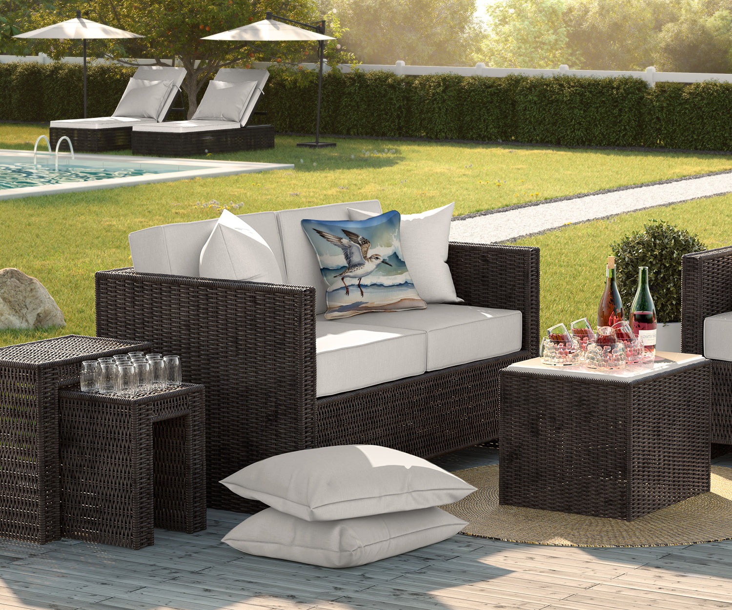 Throw Pillow featuring breed specific Sanderling artwork. Revitalize your outdoor or indoor living space with Caroline's Treasures 18x18 Fabric Decorative Pillow. With a generously sized dimension of approximately 18 inches by 18 inches, this pillow makes a comfortable and aesthetic addition to any seating area. Made from a unique, water-resistant material developed by Caroline's Treasures, the pillow sham is 100% polyester fabric that's durable and ready to weather any condition. Its vibrant, full-color artwork will not fade over time as it is dyed with color-fast dyes. Whether you place it on your patio furniture, porch, veranda, or indoor couch, its soft canvas fabric ensures a cozy experience. The pillow is handcrafted in the United States, featuring a sham created from three pieces of fabric and a polyester insert for enduring shape and overstuffed comfort. Despite being robustly built to endure the outdoors, it is as soft and snug as your favorite indoor cushions. Please note, as all our pillows are handmade, sizes may vary slightly, adding to the charm of this unique decorative item.