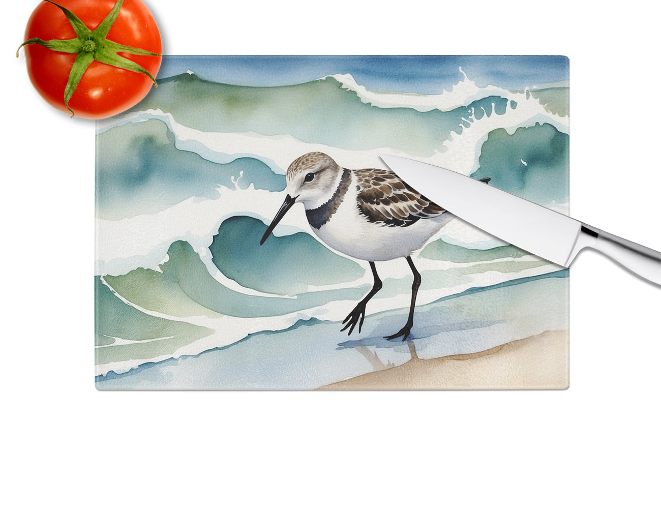 Glass Cutting Board featuring breed specific Sanderling artwork. Introduce your kitchen to the vibrant, large Decorative Glass Cutting Board from Caroline's Treasures. Crafted from resilient tempered glass, this board is not only a utilitarian necessity but also a colorful art piece. With its generous dimensions of 15 inches in height and 12 inches in length, it offers ample space for all your cutting needs. Every piece showcases captivating artwork from distinguished artists, bringing an aesthetic edge to your kitchen. Beyond its attractive design, this cutting board ensures your countertop stays pristine and unscathed, owing to its heat-resistant properties. Engineered with user convenience in mind, it features non-skid feet for stability, and rounded corners for additional safety. Its robust construction renders it virtually unbreakable, guaranteeing longevity. The board comes with protective feet bumpers, maintaining its position during use. This product is recommended to be hand washed only. Proudly printed and assembled in the United States, this cutting board exemplifies superior craftsmanship. With Caroline's Treasures' Decorative Glass Cutting Board, you're investing in a blend of functionality and artistic flair.