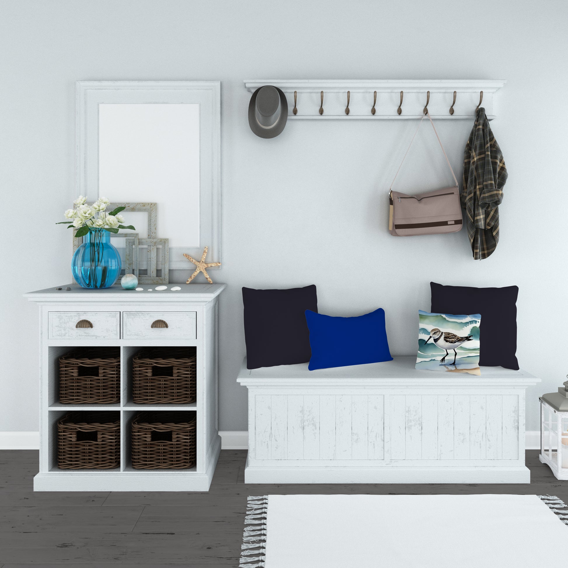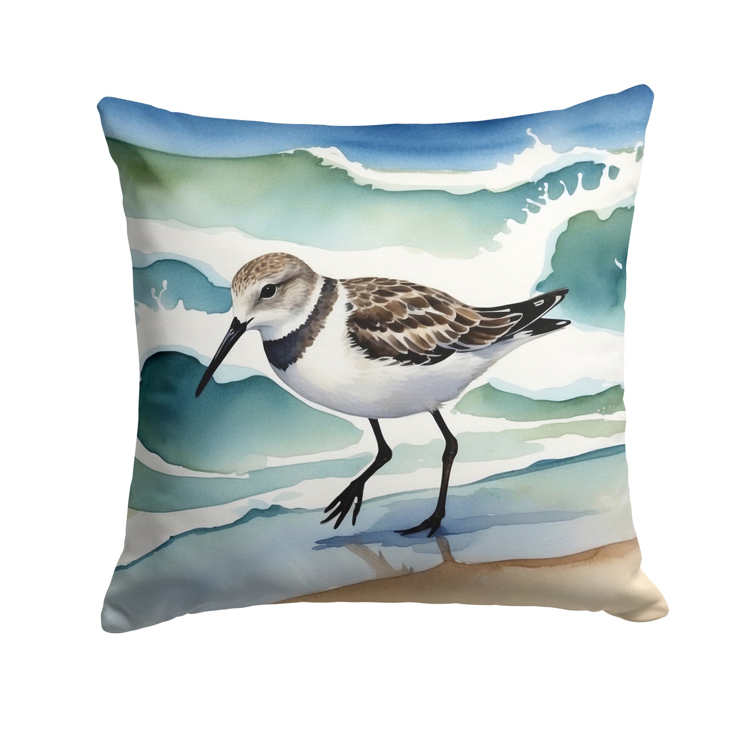 Throw Pillow featuring breed specific Sanderling artwork. Add a touch of vibrancy and comfort to your outdoor seating with Caroline's Treasures Fabric Decorative Pillow. Measuring approximately 14 inches by 14 inches, this outdoor pillow is crafted to elevate the appeal of your patio furniture, infusing it with vivid color and artistic flair. The pillow includes a 100% Polyester Fabric sham filled with a quality pillow form to provide superior comfort. Innovatively made from our brand new material, specifically woven for its water resistance, this pillow is designed for durability. The soft canvas fabric offers versatility in use, fit for your indoor couch or your outdoor patio, porch, or veranda. The fabric is dyed with colorfast dyes built for resilience against weather conditions, ensuring the pillow retains its beauty over time. Constructed by sewing three fabric pieces to create a sham, the polyester insert is then nestled inside to form the pillow, resulting in an overstuffed pillow that maintains its shape. Both the sham and the pillow insert are proudly made in the United States. As the pillows are handcrafted, there may be minor variations in size, further enhancing their unique charm. Experience comfort in style with Caroline's Treasures Fabric Decorative Pillow.