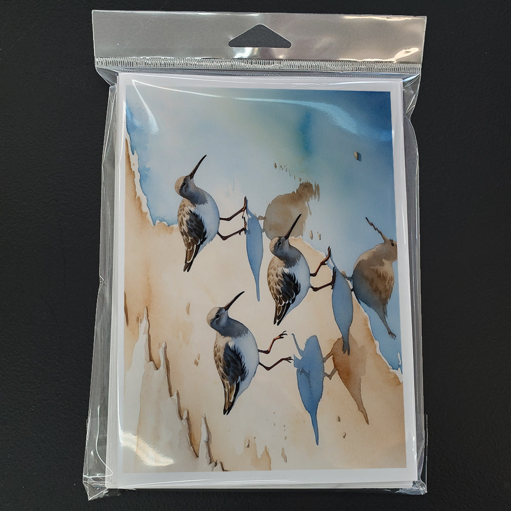 Greeting Cards Pack of 8 featuring breed specific Sandpipers artwork. Celebrate special moments with Caroline's Treasures Printed Greeting Card Pack. This pack includes eight beautifully folded 5x7 cards, accompanied by eight matching white envelopes. With blank interiors, these cards provide ample space for your personalized messages and heartfelt holiday greetings. Each card features captivating full-color artwork, meticulously printed in our facility on high-quality 80 lb cover stock or 216 GSM. The super smooth finish of the white cards enhances the visual impact of the artwork, creating a truly stunning presentation. Designed by our talented in-house artists or licensed artists, the artwork on these cards showcases their creativity and attention to detail. From vibrant illustrations to captivating designs, each card tells its own unique story. Whether it's for birthdays, anniversaries, holidays, or any special occasion, Caroline's Treasures Greeting Card Pack is the perfect way to convey your heartfelt sentiments. Share joy, love, and warm wishes with these exquisite cards and make every moment unforgettable.